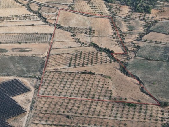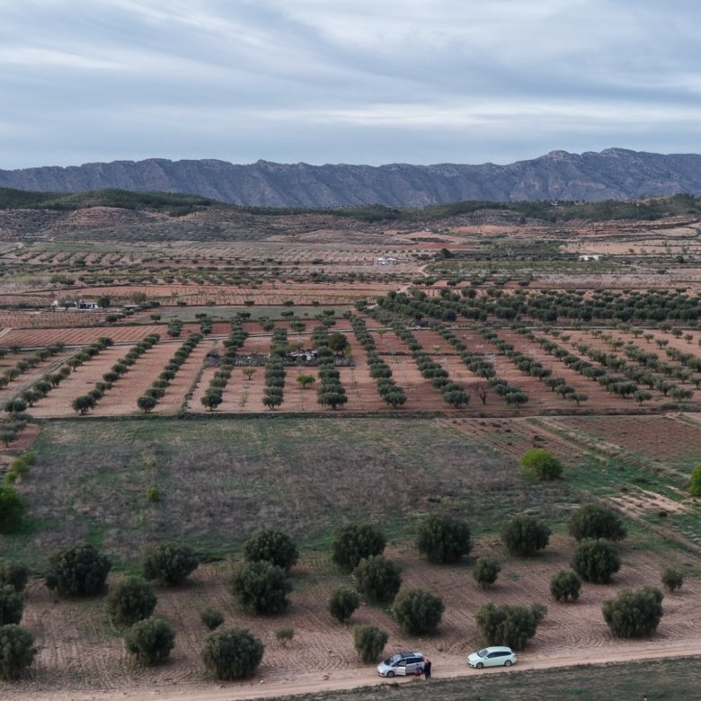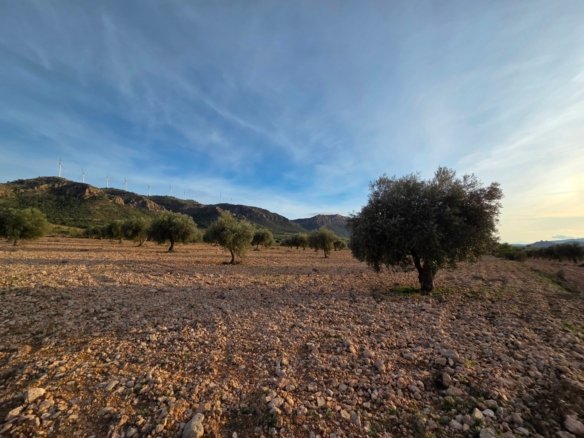 This olive grove located in the country side of Jumilla, Murcia offers beautiful views on the mountains and country side. Surrounded by olive trees, grape vines and almond trees. The plot is a little over 15 hectares (150.113m2). You can build a huge estate here with pool, garage, guest house and more! The plot has no electricity nor water connection, so you’d be fully off-grid. Please note: next to the plot there is a solar panel field, as shown on the drone picture.