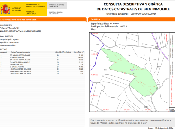 This 86,000m² building plot near Monovar offers a lush, green landscape with irrigation water readily available. With up to 2% of the land permitted for construction, this property provides ample space and flexibility for your development plans in a tranquil, natural setting.We have a large portfolio of properties in the Costa Blanca and Costa Calida areas, specialising in country properties, villas, fincas, building plots and design and build options in the Alicante and Murcia regions with a particular emphasis on Elda, Monovar, Pinoso, Sax, Villena, Aspe, Fortuna, Albacete and many more surrounding areas. We have been established since 2004 and have decades of experience between the team which we bring to bear to help you find and secure your new dream home. We help you every step of the way to make sure your purchase in Spain is safe and hassle free. We are not here to sell you a property, we are here to help you realise your dream and find what is right for you. With us you are in the safest hands. Contact us now to have a no obligation chat about how you too can realise your dreams.