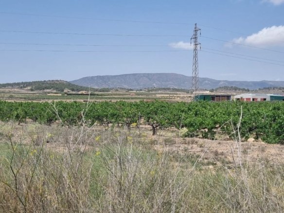 Lovely plot located approximately 5 minutes from the town of Pinoso offering beautiful views over the surrounding vineyards orchards and Regional Park. The plot comes with irrigation water included in the price, this is delivered on the mains pressure and can be used for washing bathing cleaning etc – officially you are not allowed to drink it although many clients have fitted A osmosis system with a UV philtre in order to change it to drinkable use. The plot comes with a certificate to confirm that it can be built on. In this area you can build 2% of the plot size and you can go up two levels. In pinoso you can find all your day-to-day facilities including bars, restaurants, 24 hour medical centre with an ambulance service supermarkets, schools, wine bodega’s and much much more.We have been designing and building houses in the area for 20 years now as such we have a wealth of knowledge and experience which we can bring to bear in helping you realise your new dream home. We are here to help you as much or as little as you need – whether it’s to just buy the plot to actually building and delivering your new dream home – we can help you and guide you every step of the way to make sure you realise your dream to time and budget.We have our own in-house builder who can do the work for you. However you are not tide to us in any way as we work with all the builders in the area thus giving you total flexibility and choice. In addition, should you decide to build with another builder we offer a project management service should you need it.If you wish to view this plot or other building plots that we have in our books please don’t hesitate to get in touch – with us you run the safest hands. We look forward to helping you realise your new dream home.
