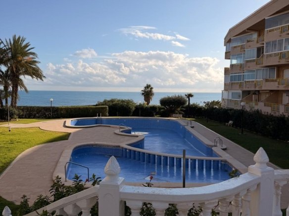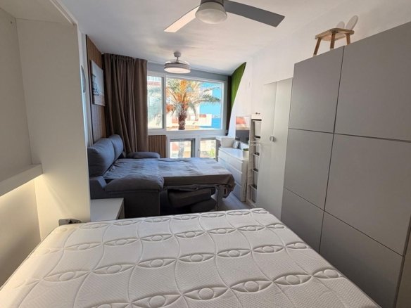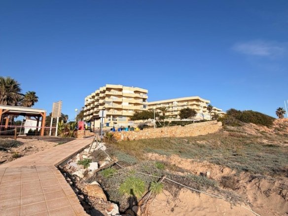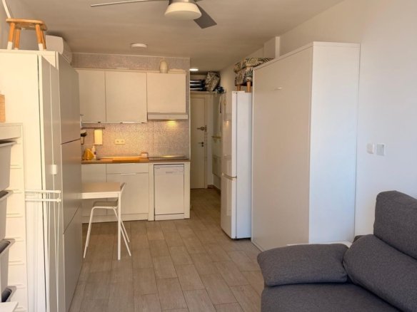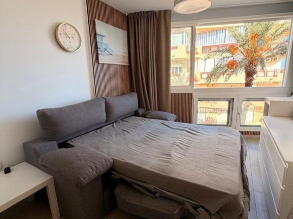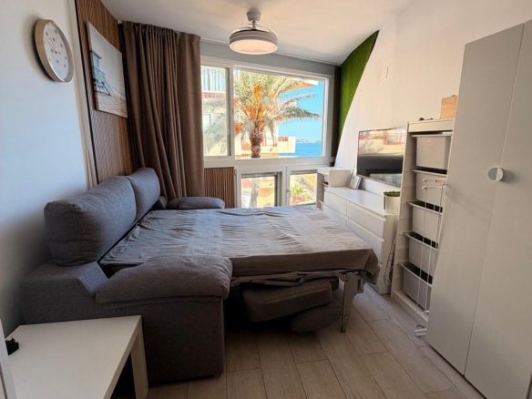 Discover this charming studio located on the beachfront in the exclusive area of Mil Palmeras, Orihuela Costa. With a built area of 35 m² and east-facing orientation, this property offers you a cozy space ready to move in. Ideal for enjoying the sun and the sea with private beach access just 50 meters away. The studio can accommodate up to four people thanks to its double bed and comfortable sofa bed. Additionally, you can relax by the communal pool while enjoying the sea views that make every moment special. The development is fully fenced and includes nearby amenities such as buses and schools. There is the possibility of applying for a tourist license. Shall we schedule your visit? Contact us for more information.