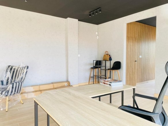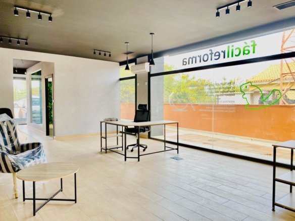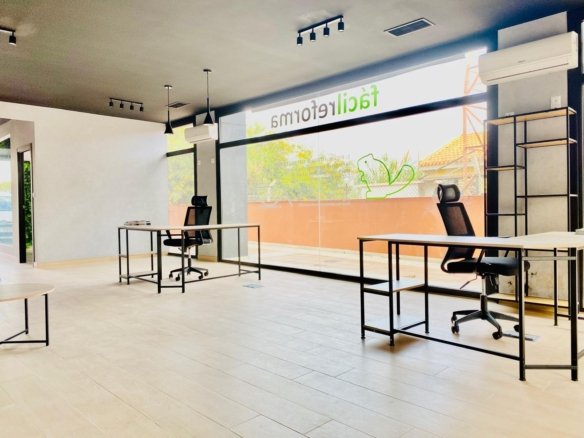 Discover this ideal office space situated in the vibrant area of Villamartín-Las Filipinas, Orihuela Costa. This recently renovated property boasts an impressive surface area of 80 m² and is just a short stroll away from the beach, making it perfect for both business and leisure activities. The east-facing orientation floods the interior with natural light, enhancing productivity and providing a welcoming atmosphere. Featuring high ceilings, elegant gres flooring combined with parquet accents adds to its modern appeal. The office includes essential amenities such as air conditioning for year-round comfort, alarm system for security peace-of-mind, spacious storage room (trastero) that can serve multiple purposes including additional workspace or filing needs; all while enjoying unobstructed views within a bustling urban environment. Located centrally with convenient access to public transportation options like bus services ensures easy commuting every day! Nearby facilities include shopping centers offering numerous retail opportunities along medical clinics ensuring health support at your fingertips. Surrounded by schools catering various educational levels alongside recreational areas featuring parks & golf courses promotes an excellent work-life balance amidst stunning surroundings—all contributing factors leading towards successful growth potential! This exceptional opportunity is available for sale
