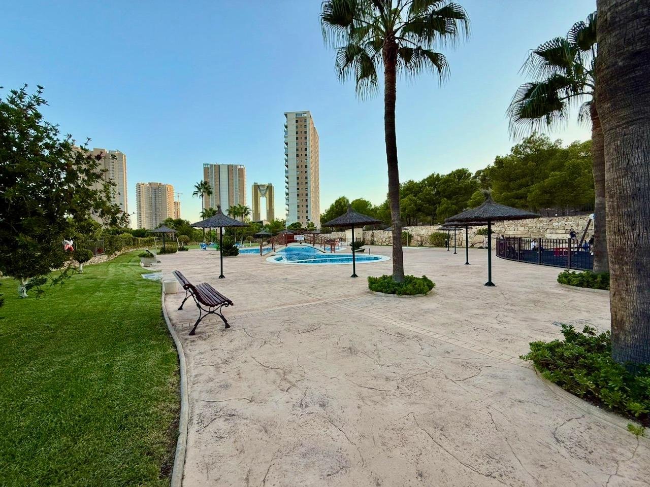 We present this attractive apartment located in the exclusive Vía Parque area of Benidorm, a highly sought-after residential area for its tranquility, excellent transport links, and proximity to the beach. With 73 m² of built area (68 m² usable area), this home stands out for its southwest orientation, which guarantees light throughout the day and unobstructed views that invite relaxation. The apartment is in perfect condition and ready to move into. It features a spacious and welcoming living-dining room with direct access to a glazed terrace, ideal for year-round enjoyment, a double bedroom with a built-in wardrobe, a full bathroom, a fully equipped separate kitchen with a utility room and modern details, and split air conditioning. It is being sold furnished, making it a practical option for both a primary residence, a second home, or an investment. One of its greatest attractions is that it comes with two private parking spaces and a storage room, all within the complex, an added value that is very difficult to find in the area. The development also offers a communal pool, large green areas with trees, children’s play areas, and a fenced area that guarantees safety and comfort for the whole family. Regarding its location, the Vía Parque area is renowned for its residential atmosphere and its proximity to both Las Rejas Golf Course and Poniente Beach. You’ll find a Udaco (Medical Center) just a five-minute walk away, while the Farmacia Trébol Benidorm Pharmacy is just a six-minute walk away. The IES Mediterrània Secondary School is also nearby. In the surrounding area, you’ll find dog parks and recreational areas, ensuring a comfortable and convenient stay. In addition, there are city bus stops just a few meters away, providing easy access to the entire city and the beaches. A fully equipped apartment, with all the amenities and extras, represents a great opportunity to live or invest in one of Benidorm’s most promising areas.