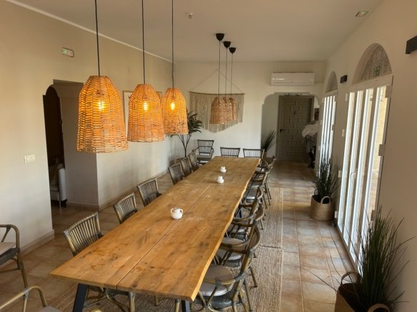 Large Hacienda for Sale – Ideal for Rental with Plenty of Development PotentialThis impressive hacienda offers a unique combination of luxury, space, and opportunities – perfect for both private stays and as an exclusive rental property. It also presents an excellent opportunity for use as a Bed and Breakfast or for corporate retreats. With 10 spacious rooms and suites, as well as numerous amenities, the property is designed to meet the needs of large families, groups of friends, or guests seeking a luxurious and private retreat.Most rooms are equipped with a large, modern en-suite bathroom and a tea kitchen, while the suites, Rooms 9 and 10, have private access via the first-floor terrace, providing extra privacy and exclusivity. This setup makes the property ideal for rental, allowing for a variety of stay options and privacy levels for guests.The hacienda’s outdoor spaces are spacious and inviting. The ground-floor terrace leads out to the swimming pool, and the property also features a large, fenced garden that includes a small football field.The property is situated in an open and scenic terrain surrounded by mountains, making it a perfect choice for active guests who enjoy outdoor activities. The area is ideal for cyclists and runners seeking a natural experience, with the mountain landscape offering both challenge and beauty.Inside, the property is equipped with a large kitchen on the ground floor with all necessary amenities, as well as a smaller kitchen on the first floor. A spacious dining room with a long table comfortably accommodates all guests, and a cozy lounge with sofas and a television invites relaxation.The hacienda is also equipped with solar panels, which reduce energy costs and make the property more sustainable.With a location just 50 km from major cities like Elche and Murcia, as well as smaller towns nearby, and only 64 km from the nearest airport, this hacienda is ideally located for rental guests eager to explore the area.Contact us today for more information on this luxurious property with ample potential.