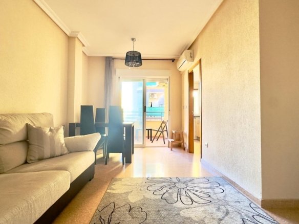 In the heart of Torrevieja, this apartment at 28 San Pascual Street offers a practical and urban lifestyle, with everything you need just steps away and the sea a comfortable distance for everyday enjoyment. The combination of two bedrooms, a bathroom, a separate kitchen, and split-system air conditioning creates a home designed for those who want to get around on foot, enjoy the vibrant city center, and at the same time, have a comfortable indoor space to unwind. Urban Environment and Location San Pascual Street runs through the heart of Torrevieja, very close to iconic squares, small shops, and some of the main thoroughfares of the city center. The apartment is situated in an area where residential facades coexist with cafes, restaurants, local shops, and professional services, creating a dynamic atmosphere year-round. Being in the city center means having supermarkets, pharmacies, banks, schools, the marina, and the bus station all within easy reach, minimizing the need for a car for daily errands. At the same time, the beaches and the promenade are within walking distance, inviting you to enjoy the sea, the lively atmosphere of the terraces, and the sunsets over the Mediterranean. Lifestyle in the center of Torrevieja Living in the center of Torrevieja means being at the heart of the city’s activity: close to the nightlife, restaurants, shops, and main cultural attractions. The streets are bustling for much of the day, with residents, tourists, and visitors exploring the area to shop, stroll, or enjoy the local restaurants and bars. This environment is especially appealing to those who value being able to leave home and, in a matter of minutes, grab a coffee, run errands, go to the gym, or head to the port without relying on public transport. Furthermore, the city center benefits from a wide range of public and private services, from health centers and pharmacies to offices, academies, and consultancies, facilitating a well-organized daily life. Impressions upon entering the apartment Upon entering the apartment, you immediately perceive the feeling of an urban home: a well-defined space that accommodates daily life without excess, organized around a living area, a separate kitchen, and two bedrooms. The entrance hall and corridor connect the different areas, creating a logical flow from the entrance to the social area and the more private part of the home. The light that enters from the exterior openings brightens the rooms and enhances the feeling of order and cleanliness. The interior feels sheltered from the noise of the street, but with the advantage of knowing that, upon crossing the threshold, all the dynamism of the city center is within easy reach. Daytime area: living room and daily life The living-dining room is the heart of the home, the place where you spend most of your time when you’re at home: watching television, sharing a meal, working on your laptop, or entertaining guests. Its position within the apartment allows for a comfortable connection to both the separate kitchen and the bedroom area, resulting in a fluid and natural flow. In such an urban environment, this room acts as a refuge after a day of work, shopping, or a stroll along the seafront. It’s the space where the pace of the day slows down, where you can enjoy a movie, a quiet dinner, or some reading while the city continues its activity outside the windows. Separate kitchen: order and practicality The separate kitchen provides a clear sense of order and functionality, as it is physically separated from the living area. This layout allows you to prepare meals, organize your shopping, and keep your culinary workspace under control without disrupting the ambiance of the living room.