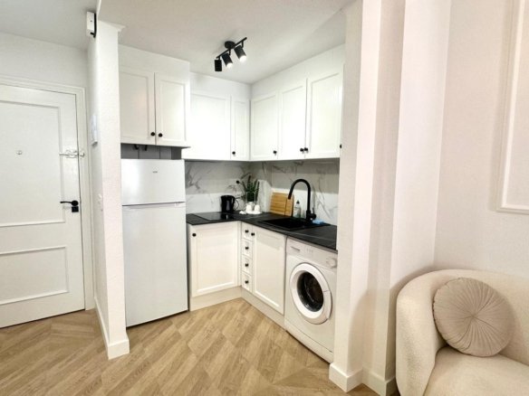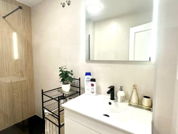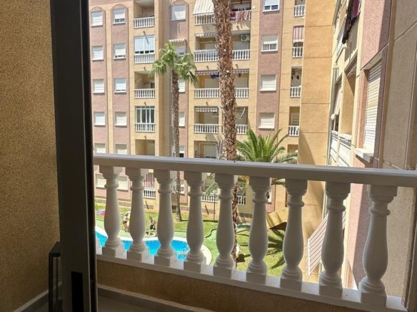 We present this cozy second-floor apartment, located in a strategic area of Torrevieja, next to the well-known Parque de las Naciones and very close to the new Inmaculada school, making it an ideal option for families and those looking for a well-connected home surrounded by amenities. The property is located within a quiet residential community that offers a communal pool, perfect for cooling off and relaxing during the summer months. From the apartment’s balcony, you can enjoy pleasant views of the pool area, which adds extra value to the home’s outdoor space. The apartment has been recently renovated, so it is in excellent condition, ready to move into without the need for any improvements. The finishes, layout, and integration of the spaces have been carefully considered, seeking to offer functionality and comfort for everyday living. Inside, the home features two bedrooms with plenty of natural light, a full bathroom, and a modern kitchen integrated into a spacious living-dining room, creating an open, comfortable, and well-designed space, ideal for both daily use and vacation stays. Thanks to its location, its renovated condition, and the community amenities, this apartment is an excellent opportunity for both year-round residence and long-term rental investment. If you’re looking for a ready-to-live-in property in Torrevieja, well-located and with a pool, this could be your next home.