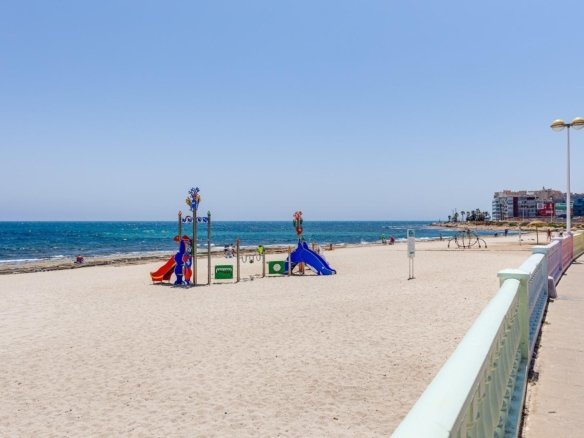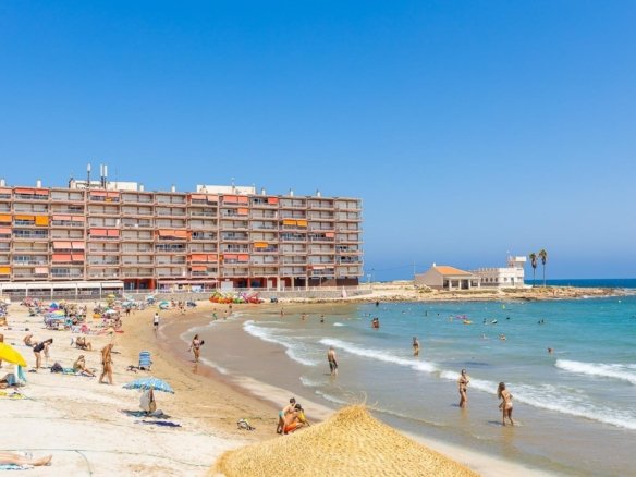 COZY RENOVATED GROUND FLOOR (51 m² – 2 BEDROOMS) WITH TOURIST LICENSE. CLOSE TO THE CITY CENTRE AND ONLY 250 M TO PLAYA DE LOS LOCOS! Renovated ground floor, close to the city centre, and only 250 m from Playa de los Locos – one of the beautiful beaches in Torrevieja. Close to the supermarket (Consum) and 15 minutes’ walk to the beach promenade at Playa del Cura. Many cozy restaurants nearby, close to the pétanque courts in La Rosaleda and to the popular meeting point Los Angeles with restaurant, pool, and paddle courts, etc. Good public transportation with the city buses. A wonderful holiday apartment, both to use yourself and as an investment for rental! KEY FEATURES: –Close to the city centre, private entrance from the street, and only 250 m to Playa de Los Locos. –Spacious living room with dining area and open kitchen, fully equipped –2 bedrooms and 1 bathroom (with bathtub). –Tourist license since 2018 and approved for 4 beds. –Renovated and in very good condition, fully furnished, and ready to move into immediately. OTHER ADVANTAGES: –Garage space included in the price. –Modern AC (air source heat pump) in the living room. –Close to a large supermarket (Consum 350 m). –Good public transportation with the city buses – close to several bus lines. –Community fees: approx. €25/month. IBI approx. €200/year. The building was constructed in 2010 and is well maintained. The apartment is recently renovated and in very good condition, sold fully furnished, ready to move into immediately. The apartment is located right next to Playa de los Locos in one of the most popular areas of Torrevieja, both among year-round residents and tourists. Within walking distance, you have plenty of restaurants, bars and cafes, supermarkets, pharmacy, and a 24 h health centre. Playa del Cura is only about a 15-minute walk, and the bus terminal in the city centre is 1.4 km away. And with several bus lines nearby, you can easily get anywhere in Torrevieja with the city buses. And in Torrevieja, with more than 110,000 inhabitants and the third largest city in the province of Alicante, there is of course a complete range of shopping, entertainment, sports facilities, hospitals, schools, and also direct buses to Alicante airport (45 min). Don’t miss out on this renovated ground floor. A wonderful holiday apartment, both for personal use and as an investment for rental! Contact us today for a viewing!