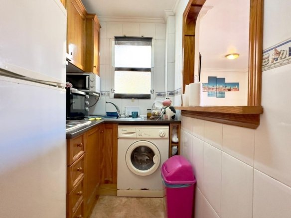 In the Parque de las Naciones area, this penthouse at 5 Bilbao Street stands out as a truly special property, where privileged views and a high ceiling combine with the convenience of having all of Torrevieja at your doorstep. With two bedrooms, a bathroom, a parking space, split-system air conditioning, and sold furnished, it presents itself as a move-in ready haven, perfect for year-round living or enjoying time by the Mediterranean. Surroundings and Location Bilbao Street is located in a highly sought-after area of Torrevieja, near Parque de las Naciones and within easy reach of the city center and the sea. The surrounding area combines modern residential buildings with green spaces, nearby amenities, and a tranquil atmosphere, ideal for those seeking a balance between urban life and a relaxed environment. The proximity to the park offers the opportunity to enjoy walks, children’s play areas, and open spaces, while shops, cafes, restaurants, and the main roads connecting to the rest of the city are just a short walk away. This location makes the penthouse a perfect base for getting around on foot or by car with complete ease. Privileged views and a penthouse feel The true essence of this home lies in its views: situated on the top floor of the building, the penthouse opens up views of the urban environment and, depending on its orientation, can offer unobstructed panoramas of the park, the city, and even glimpses of the sea. This elevated perspective generates a feeling of spaciousness and freedom, very different from that of a home on lower floors. From the terrace and the main rooms, the landscape changes throughout the day: sunrises that paint the city in soft hues, clear skies at midday, and sunsets that transform the horizon into a perfect backdrop to end the day. This visual connection with the outdoors gives every moment at home a special, almost theatrical, quality. Living area: light, views, and conviviality The living area is organized around light and views, becoming the social heart of the penthouse. This space encompasses the living and dining areas, in a layout that invites you to enjoy both everyday life and gatherings with family and friends, always with the feeling of being above the hustle and bustle of the street. The windows and access to the terrace allow the outdoors to be visually integrated into daily life: watching the city while eating, relaxing on the sofa contemplating the sky, or sharing a conversation with the landscape as a backdrop. All of this reinforces the idea of a panoramic home, where the surroundings are part of everyday life without sacrificing interior privacy. Separate kitchen: order and convenience The separate kitchen provides added order and functionality, highly valued in a home of this type. Being separate from the living room allows you to cook, organize your shopping, and store utensils without encroaching on the space for relaxation and gatherings. This configuration simplifies daily life: you can prepare a leisurely breakfast before leaving, cook calmly while the rest of the house remains tidy, or leave the kitchen in full swing without affecting the aesthetics of the living room. For those who enjoy gastronomy, the kitchen’s separation transforms this space into a small culinary workshop, separate from the more social life of the penthouse. Two bedrooms: rest and privacy The two bedrooms allow for a comfortable and well-defined sleeping area, distinct from the more dynamic part of the home. Each offers a more secluded atmosphere, ideal for ensuring peaceful nights even when the living area is still in use or the city is bustling.