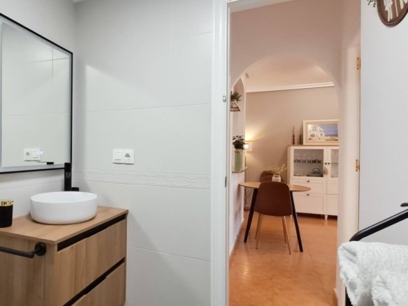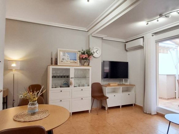 This fourth-floor ático apartment offers an ideal space to enjoy a Mediterranean lifestyle. It features a large south-facing balcony where you can relax, dine, and enjoy sunlight throughout the day, with access from both the living room and the master bedroom. The thoughtfully designed interior includes an open-plan living room and kitchen, two bedrooms, and a recently renovated bathroom. The living room opens directly onto the spacious balcony, providing additional room for everyday living. Situated just 200 metres from the beach, the apartment is conveniently close to all the amenities that La Mata has to offer. Contact us to arrange a viewing and discover the potential of this well-located home.