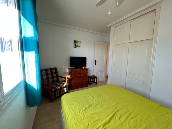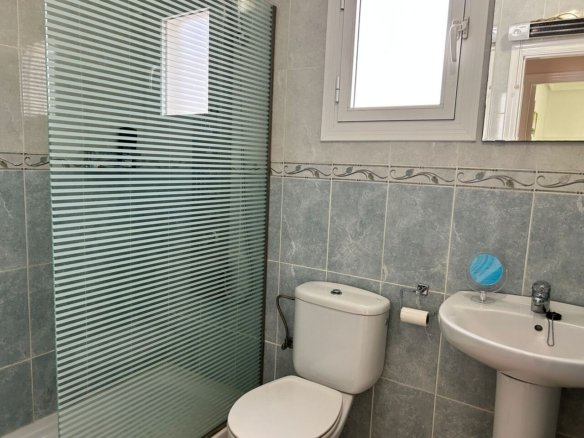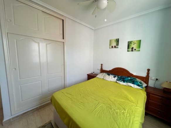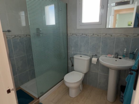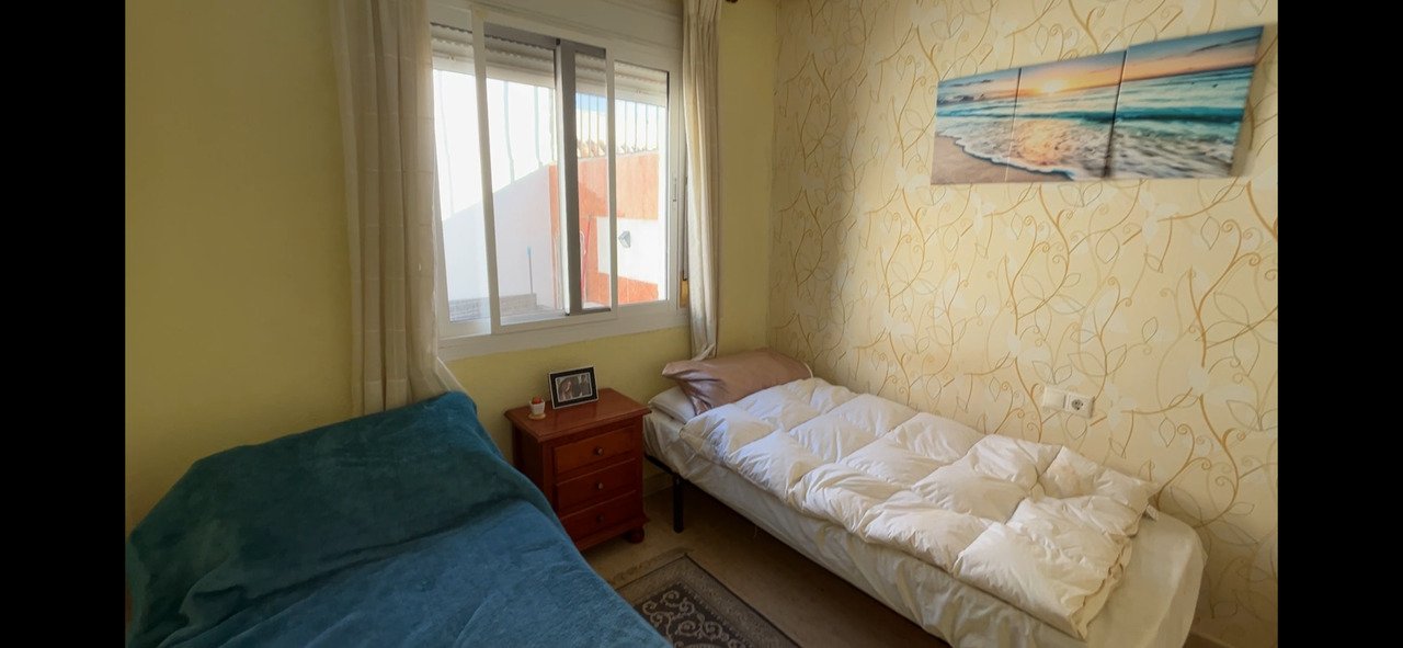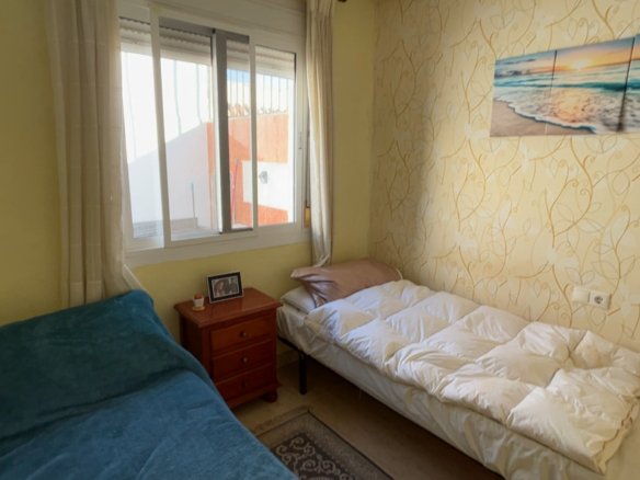 Sunny South-West Facing Rebecca Style Home – Final Phase Camposol (D35)Situated on the sunny side of the street, this well-maintained south-west facing Rebecca style mid-terraced property is located on the sought-after urbanisation of Camposol, Sector D35. The home offers 2 bedrooms and 1 bathroom and is sold fully furnished, making it completely key-ready for its new owners.To the front of the property is a small garden area with a few steps leading up to the inviting front terrace, furnished with sofas and a small table and chairs — perfect for enjoying the afternoon sun.The main entrance opens into a spacious lounge, featuring air conditioning and a charming brick-built fireplace. To the rear of the lounge is a dedicated dining area, which flows seamlessly into the bright, airy kitchen, finished with modern red high-gloss work surfaces. All white goods are included.A hallway off the lounge leads to the rest of the accommodation. Two double bedrooms benefit from built-in wardrobes and ceiling fans. The front bedroom houses a double bed, while the rear bedroom offers twin single beds. The family bathroom is fitted with a WC, wash hand basin, and a modern multi-function walk-in shower.At the rear of the property, accessed directly from the kitchen, is a private terrace furnished for outdoor dining. From here, concrete stairs lead up to the impressive 40m² solarium, offering lovely open mountain views. The solarium is equipped with a wooden gazebo, wicker table and chairs, and additional seating — an ideal space for relaxing or entertaining.The property offers approximately 60m² of internal living space, plus generous outdoor terraces, and is set on a quiet road bordering open countryside.Camposol boasts an 18-hole golf course and two commercial centres with shops, bars, restaurants, banks, dentists, and a medical centre. The beautiful beaches of Puerto de Mazarrón are just 15 minutes away, Murcia Airport approximately 5 minutes’ drive, and Alicante Airport around 70 minutes.