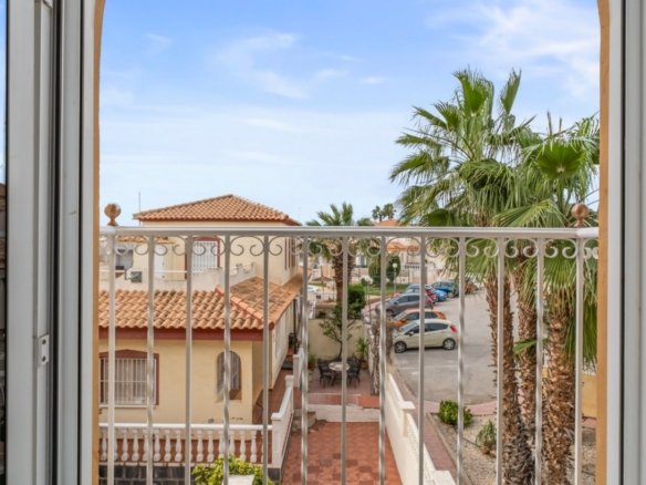 This charming west-facing townhouse is located in the popular area of La Florida, Orihuela Costa, and represents an excellent property for sale in La Florida Orihuela Costa, offering comfort, natural light, and a great location close to all amenities. The property welcomes you with a spacious sunny front terrace, ideal for enjoying afternoon and evening sun. On the main floor, there is a bright and spacious living room, tastefully decorated, along with a guest toilet. The separate modern kitchen is in excellent condition and provides direct access to a private rear terrace, perfect for outdoor dining or relaxing. Upstairs you will find two well-distributed bedrooms with plenty of natural light, as well as a full bathroom. One of the bedrooms has access to a terrace that leads to a private roof solarium, ideal for enjoying sunsets or creating a chill-out space. The property is part of a well-maintained community with a communal swimming pool and gardens, offering a peaceful environment. Ideally located close to shops, restaurants, and services, and just a short drive to Zenia Boulevard, golf courses, and the beaches of Orihuela Costa. An ideal home near golf courses and the beaches of Orihuela Costa, and a great holiday home or investment property in Costa Blanca South.