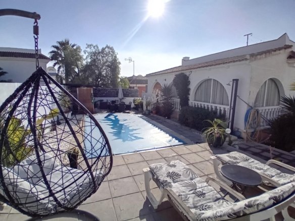 Set within the popular international urbanisation of Camposol, this detached villa offers a wonderful blend of style, comfort and outdoor living. Positioned on a generous 350 m² plot and boasting close to 100 m² of internal space, the home presents an inviting layout that has been beautifully maintained since its construction in 2007. The property sits in an elevated position on one of the most peaceful areas of the urbanisation. Capturing the first light of the day with tranquil sunrises from the open roof solarium, when evening comes the outlook transforms into warm, sweeping sunsets framed by mountain views stretching down the valley towards Mazarrón, located just a 10-minute drive away. Designed for year-round enjoyment, the villa features hot-and-cold air conditioning and a glazed summer lounge overlooking the private pool. The outdoor spaces are thoughtfully arranged, offering a sundeck for relaxing, a dedicated bar and entertaining area with ample seating, and plenty of room to enjoy the Mediterranean climate. For those who love long countryside walks—especially dog owners—the villa is ideally situated just 50 metres from open country, with miles of scenic tracks to explore. Adding further potential, the underbuild provides an exciting opportunity for renovation. Whether you envision a workshop, hobby room, additional bedrooms, a gym or even a home cinema, this flexible area invites creativity. The location offers excellent access to the region’s highlights: * RMU Airport – approximately 30 minutes * Historic Cartagena – around 30 minutes * Murcia city centre – around 30 minutes * Camposol Golf and bustling Commercial centre – 5 minutes * Condado de Alhama Golf Resort – 15 minutes * Beautiful beaches of Bolnuevo and Puerto de Mazarrón – a short 15 minute drive away This stylish villa combines a peaceful countryside setting with convenience and lifestyle, making it an ideal choice for holidaymakers, full-time residents or those seeking a vibrant yet relaxed base in the Murcia region.