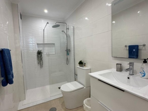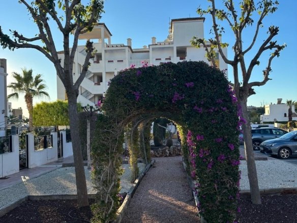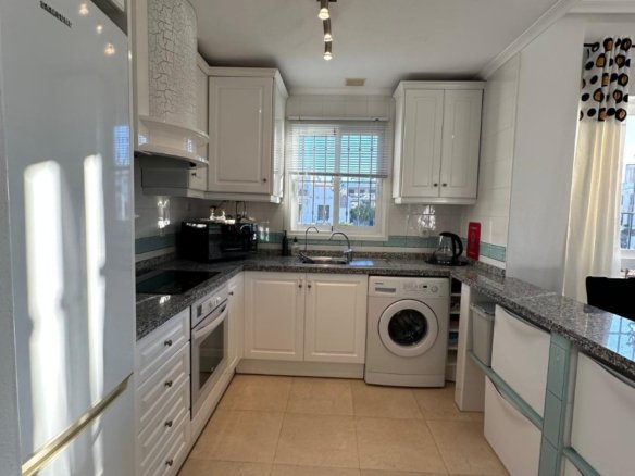 This stunning and spacious two-bedroom apartment is ideally located within walking distance of the popular La Fuente Centre, offering a wide selection of shops, bars, restaurants, and everyday amenities.Set within a well-maintained residential community, the property benefits from private parking, a beautiful communal swimming pool, and immaculately kept landscaped gardens with lush greenery and colourful flowers, maintained year-round.Upon entering the apartment, you are welcomed by the first double bedroom, complete with a fully equipped bathroom. A hallway leads through to a bright and spacious open-plan kitchen, fully fitted and designed for both comfort and functionality. This flows seamlessly into the light-filled living and dining area, which opens directly onto the front terrace—perfect for relaxing or entertaining.The master bedroom features an en-suite bathroom and patio doors that also lead onto the front terrace, offering lovely views over the communal gardens. The apartment further benefits from access to a communal rooftop solarium, ideal for sunbathing and enjoying the Mediterranean climate.Perfectly positioned, this property is ideal for year-round living or as a holiday home. It is just a few minutes’ drive from three renowned golf courses and approximately a 10-minute drive from beautiful coastal beaches.