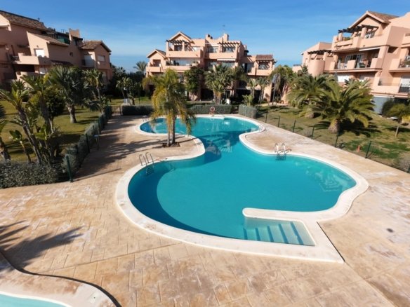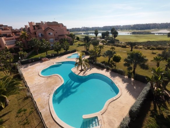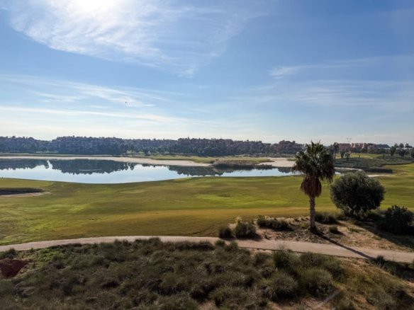 Frontline Golf Apartment with Lake Views – Mar Menor Golf Resort This well-positioned 2-bedroom, 2-bathroom apartment is located frontline on the golf course within the prestigious Mar Menor Golf Resort, offering open views over the fairways and the central lake. The apartment benefits from a south-facing orientation, ensuring excellent natural light throughout the day and making the most of the Mediterranean climate. The living and dining area opens onto a private terrace, ideal for outdoor dining while enjoying the peaceful golf and lake views. Both bedrooms are generously sized, with built-in wardrobes, and the two bathrooms are finished in a practical, modern style. The property is well suited as a permanent residence, holiday home, or investment property with strong rental appeal. A private garage space is included, providing secure and convenient parking. Set within a secure, well-maintained resort with 18-hole golf course, hotel, restaurants, and easy access to the beaches of the Mar Menor and the Costa Cálida, this apartment combines location, views, and orientation—key factors for long-term value. A solid frontline golf property in one of the region’s most established resorts.