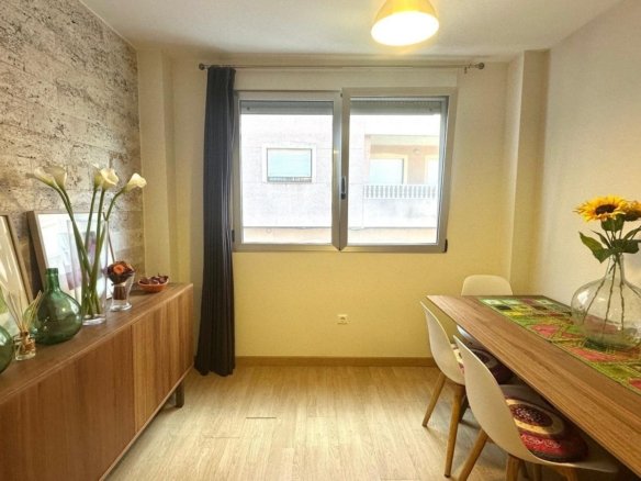 Modern flat 200 metres from La Mata beach We present this magnificent first-floor flat, located in one of the most sought-after areas of the Alicante coast: La Mata, known for its Mediterranean atmosphere, its wide beaches of fine sand and its excellent range of services throughout the year. The property combines comfort, design and a privileged location, just 200 metres from the sea and surrounded by all essential amenities. Upon entering the apartment, we find a modern entrance equipped with a video intercom, providing added security and comfort. The property has central air conditioning, ensuring a pleasant temperature at any time of year. The heart of the home is a bright south-facing living-dining room, which ensures magnificent natural lighting throughout the day. This space is integrated with a modern and functional American-style kitchen, equipped with appliances and designed to make the most of the space, allowing you to enjoy an open and communicative atmosphere ideal for everyday life. The sleeping area consists of two well-distributed bedrooms. The master bedroom is double and has an en-suite bathroom and fitted wardrobes, offering spaciousness, privacy and tidiness. The second bedroom is single and is perfect as a guest room, study or children’s room. In addition, the property has a second full bathroom, equipped with a shower tray and modern finishes. The property stands out not only for its functional design, but also for its strategic location. It is just a few steps from La Mata beach, allowing you to enjoy the sea without the need for a vehicle. Likewise, all the necessary amenities are nearby: supermarkets, restaurants, pharmacies, public transport, green areas and leisure facilities. This flat is an ideal option both for year-round living and for investing in a second home or holiday rental, thanks to its proximity to the beach, its excellent condition and its modern amenities. In short, this is a property that combines location, quality and functionality, ready to move into and enjoy the authentic Mediterranean lifestyle in one of the best areas of La Mata.