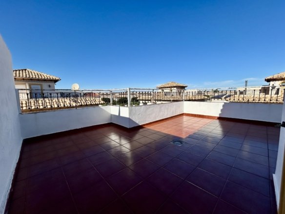 This beautifully presented 2-bedroom, 2-bathroom semi-detached San Jose property sits on a generous 158 m² plot, offering the perfect blend of comfort, privacy, and Mediterranean lifestyle.The home features bright, well-proportioned interiors with a seamless flow between indoor and outdoor living. Both bedrooms are spacious, with two modern bathrooms designed for convenience and relaxation. Step outside to enjoy multiple outdoor spaces, ideal for dining, entertaining, or simply soaking up the Spanish sun.A standout feature is the private solarium, providing an elevated retreat with ample space for sun loungers, chill-out seating, or even a summer kitchen—perfect for enjoying all-day sunshine and warm evenings.Residents benefit from access to a beautifully maintained communal swimming pool, while the quiet, private street enhances the sense of exclusivity and tranquility.Ideally located, the property is just a 10-minute walk to the famous Cabo Roig Strip, renowned for its vibrant selection of restaurants, bars, and nightlife, as well as close proximity to stunning beaches, amenities, and transport links.Whether as a permanent residence, holiday home, or investment opportunity, this property offers exceptional value in one of the Costa Blanca’s most sought-after locations.