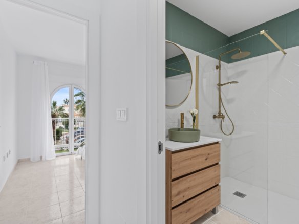 This stunning fully renovated 2-bedroom, 1.5-bathroom townhouse is ideally situated in the sought-after area of La Florida, just a short stroll from the vibrant Via Park, known for its excellent selection of bars, cafés, and restaurants.The property has been thoughtfully modernised throughout, offering a stylish and move-in-ready home perfect for holidays, rental investment, or year-round living.The ground floor features a bright and welcoming living area, a contemporary kitchen, and a convenient guest toilet. Outdoors, the home enjoys terraces on both the east and west sides, allowing you to enjoy sunshine or shade throughout the day—ideal for outdoor dining, relaxing, or entertaining.Upstairs, you’ll find two well-proportioned bedrooms and a modern family bathroom. One of the bedrooms opens onto a private balcony, which leads directly to a spacious rooftop solarium. From here, you can take in beautiful panoramic sea views, making it the perfect space for sunbathing, evening drinks, or simply enjoying the Mediterranean lifestyle.The location is unbeatable:Minutes from the popular shopping and leisure destination La Zenia BoulevardA short drive to the sandy beaches of Punta PrimaSurrounded by amenities, golf courses, and excellent transport linksThis is a rare opportunity to own a stylish, turnkey townhouse in one of the Costa Blanca’s most convenient and lively residential areas.