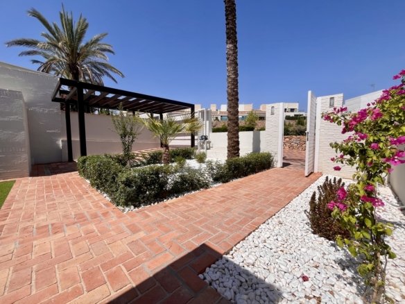 Stunning 2-Bedroom, 2-Bathroom Townhouse set on the front line of the golf course offers a rare opportunity to enjoy peace, privacy, and panoramic green views in the sought-after La Peraleja Golf Resort.The home features elegant wooden beam ceilings, eurotermina throughout, and a cozy chimney – blending rustic charm with modern living. The spacious layout includes a bright open-plan living and dining area, a fully fitted kitchen, and two generously sized bedrooms with built-in wardrobes. Electric radiators provide comfort year-round.Outside, enjoy both front and back private gardens and your very own private swimming pool — perfect for enjoying the warm Spanish sun and entertaining guests.The resort itself boasts 24-hour gated security, newly installed CCTV throughout, and a relaxed, exclusive atmosphere. The 18-hole golf course is currently under full renovation and set to be completed by the end of 2025, with a new restaurant also in development, adding future value and lifestyle appeal.Conveniently located just a 5-minute drive from the charming town of Sucina, where you’ll find shops, restaurants, and everyday amenities, this property offers a perfect blend of countryside calm and modern convenience.Whether you’re looking for a permanent home, holiday retreat, or a smart investment, this property ticks all the boxes for comfortable and secure Mediterranean living.