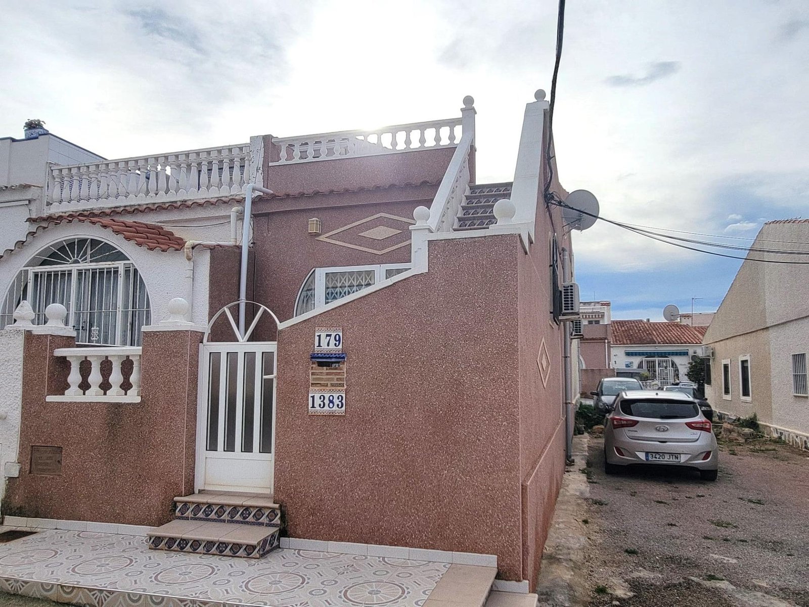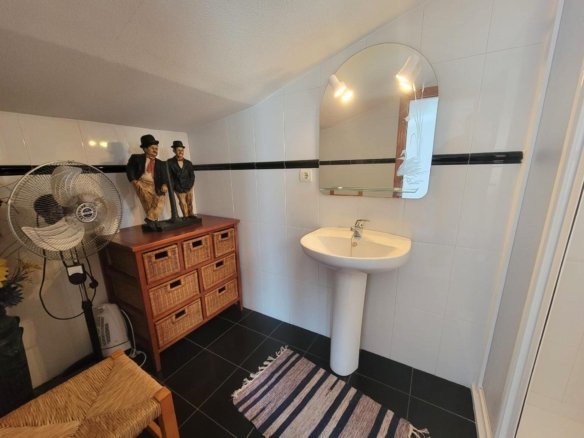 Cosy semi-detached corner house with two floors and solarium (16m2), near La Mata Natural Park. The ground floor consists of a large front terrace, a spacious living room with an open plan kitchen, a double bedroom with an en-suite bathroom, a guest toilet and a storage room (under the exterior staircase). The upper floor consists of a small attic with a double bedroom with an en-suite bathroom, a storage room and a solarium with a shower and clear views of the surrounding landscape. The two floors are connected by an exterior staircase. The two bathrooms have showers. The kitchen is fully equipped. Furnished. Built-in wardrobes in the bedrooms. Air conditioning in the living room and the master bedroom. The property is in very good condition.There are fiber optic internet, a gas water heater and a demineralized water system. NO community fees! With 2 private side parking spaces facing the main facade. Located close to all amenities, restaurants, cafes, parks, about 10 minutes by car from the Carrefour supermarket, the Habaneras Shopping Centre, the Park in La Siesta with its sports facilities (paddle courts, basketball, an so on.) and leisure areas for children and about 15/20 minutes by car from the beach. Urban bus service in the area.