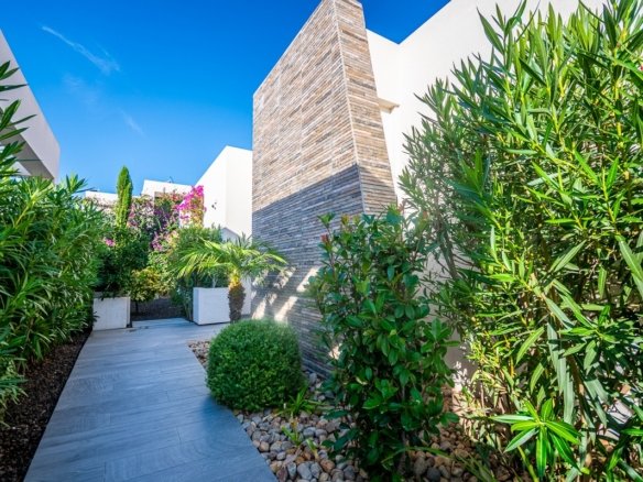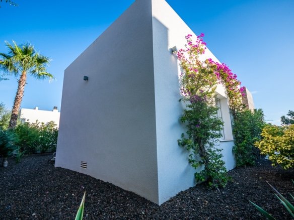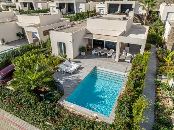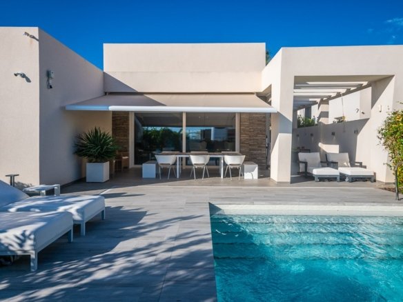 Stunning Detached Villa with high-end extra´s at La Finca Golf Resort – Algorfa This unique villa, situated on a spacious 500m² plot, offers a perfect blend of modern comfort and Mediterranean charm. The bright, open-plan layout seamlessly connects the living area, kitchen and dining space, all opening onto an impressive L-shaped terrace, beautifully landscaped garden, and a private pool. Thanks to the large windows, natural light floods every corner of the home, creating a warm and inviting atmosphere. The terrace, partially covered by a stylish pergola with electric awnings, is the ideal spot to relax or entertain — a perfect setting to enjoy the Mediterranean climate all year round. Originally designed with three bedrooms, the current owners have customised the layout into a more spacious two-bedroom configuration. With minimal effort, the villa can easily be converted back into a three-bedroom home. The 3th bedroom can be constructed again if the buyer wishes this. Do you drive electric? Your own charging point is already installed, and the house has 3-phase selectric wires fitted up to 400V This villa is equipped to the highest standard: Zoned hot/cold air conditioning Underfloor heating in the bathrooms Security system with video surveillance Smart home automation Electric shutters Private pool with outdoor shower Charging point for electric vehicles Multiple electric awnings Private parking with automatic gate Colorful garden with fruit treesHigh-tech extras throughout the house The mature garden surrounds the villa with fruit trees and aromatic plants, offering privacy and a sense of tranquillity. The kitchen is a true highlight — fitted with high-end Miele appliances and finished to the very best quality standards. There is even a basement that still needs to be finished wher you have more then 100m2 to make your own extra rooms, mancave or bodega.. Located within the prestigious La Finca Golf Resort in Algorfa, at the heart of the Vega Baja, this home offers access to exclusive amenities: fine dining restaurants, a luxurious 5-star hotel with spa and gym, an elegant clubhouse, and the renowned La Finca 18-hole golf course. Just a short drive away you’ll find the beautiful beaches of Guardamar and Torrevieja, where the sun shines over 300 days a year. Both Alicante and Murcia airports are within easy reach — 40 and 55 minutes respectively. A truly exceptional villa, offering peace, luxury and the perfect Mediterranean lifestyle.