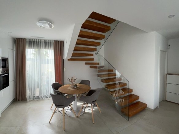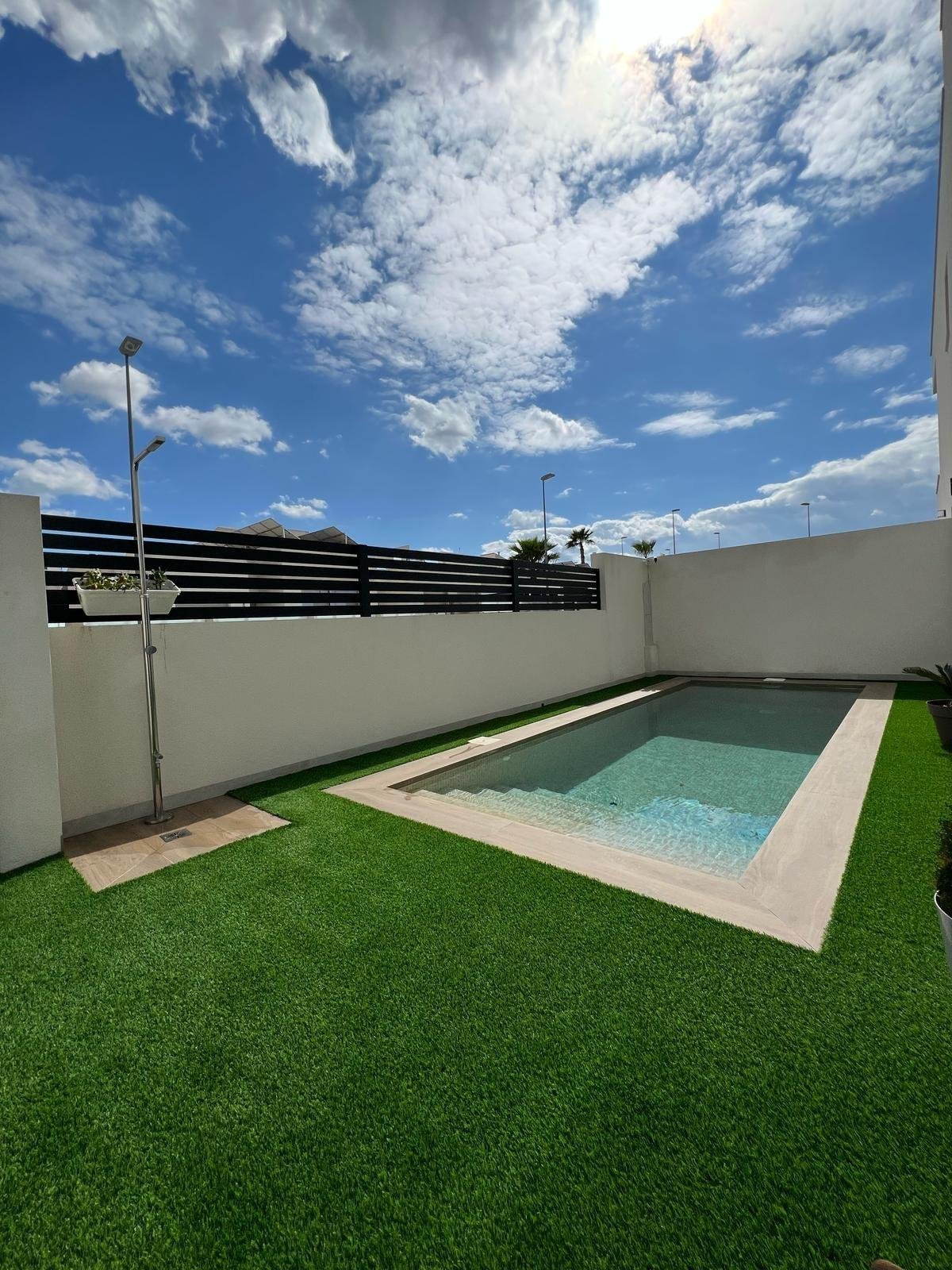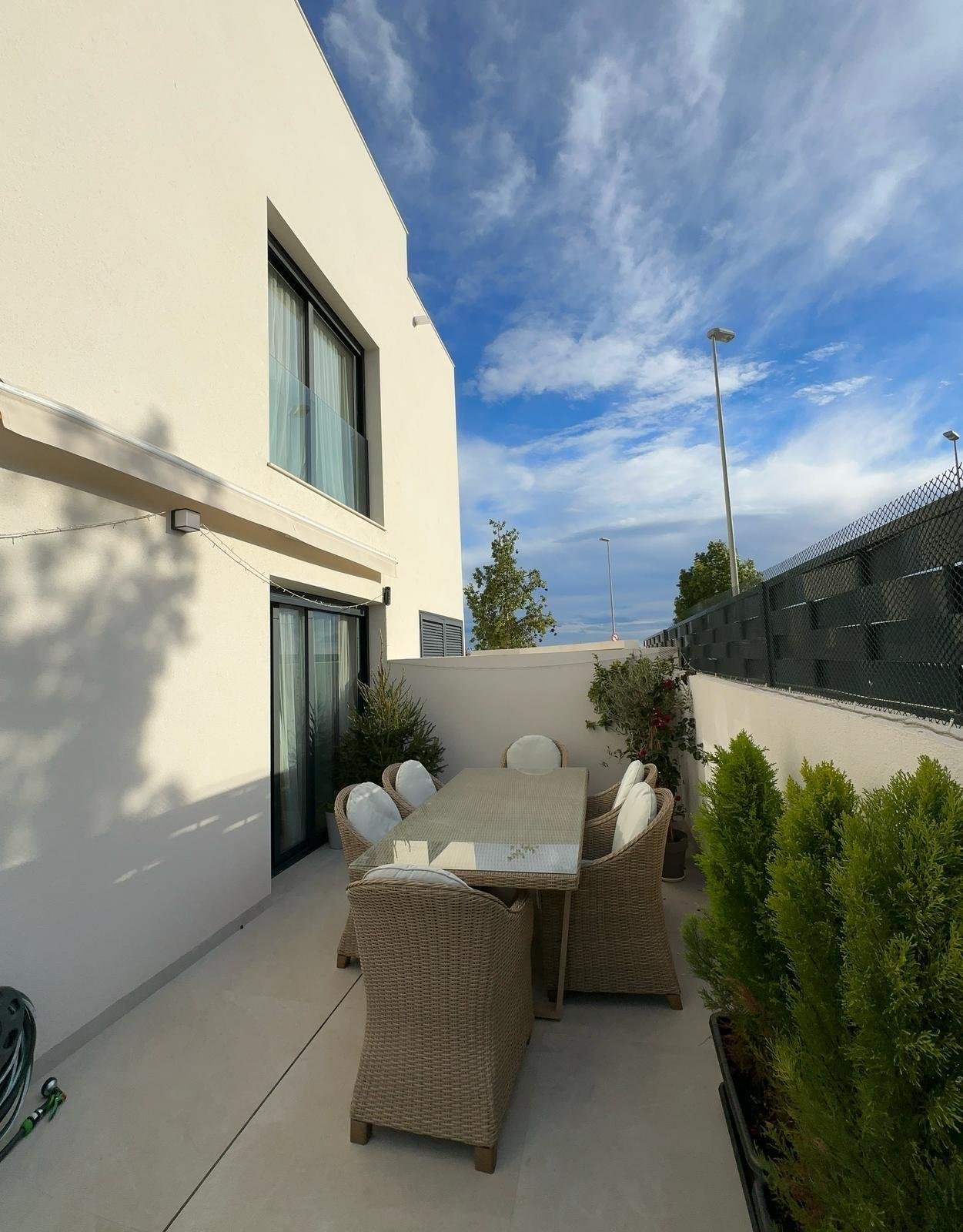We present this wonderful two-storey semi-detached house located in Benijófar. It was built in 2024, fully equipped with furniture and all the necessary appliances. Spacious rooms, a cozy patio with pool and terrace, as well as a convenient location make it an excellent choice for those who value comfort and quality. About the house: • 110 m² total floor area • Plot of 150 m² – there is a parking space, barbecue area and a small garden. • 2 bedrooms with fitted wardrobes • 2 bathrooms, one of them with shower. • Kitchen-dining room combined with living room, with panoramic view of the pool. • Terrace with garden furniture and retractable awning. • Exit to the solarium on the second floor. Location: The house is located in a quiet area, but everything you need is nearby: shops, pharmacies, restaurants, banks, everything is within walking distance. The beaches of Guardamar del Segura and La Mata are only a 15-minute drive away. There is also