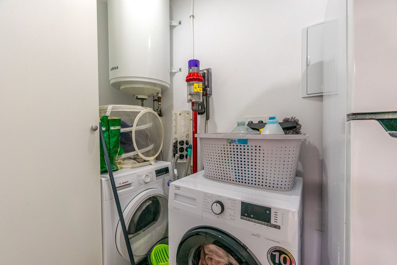 Modern and spacious villa with 2 bedrooms, 2 bathrooms, private pool and roof terrace.This great villa on one level from 2018 is 112 m2.In terms of content, the villa has a large living/dining room, a beautiful kitchen, a laundry room, 2 bedrooms and 2 bathrooms.The master bedroom has an adjoining walk-in closet and bathroom. Both bathrooms have underfloor heating.There is a large roof terrace with a roof and great views.The garden is tiled and awnings have been installed. There is also a carport and a storage room.The property is sold furnished, with white goods and air conditioning.Price: 359,000 euros + costsFacts:Year of construction: 2018Plot: 249.37 m2Housing: 112.04 m2Pool: 18 m2Energy certificate: A/BStorageLaundry roomRoof terraceFurnishedWhite goodsAir conditioningProperty tax: 315 euros per year.