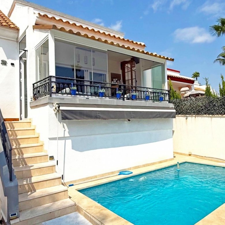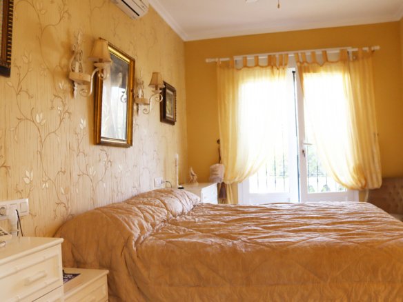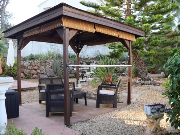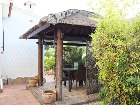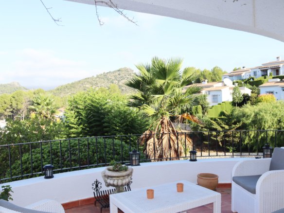 Ready to move into this detached 2 bedroom, 2 bathroom villa is located on the sought after urbanisation of Puerta del Valle on the outskirts of Murla.A long drive,way with parking for 4 vehicles leads to the front of the property where a few steps lead you to a lovely covered naya with great views to the Coll de Rates and the main entrance to the villa.Rejas and double fully glazed French doors open into the bright and spacious lounge and dining room. The lounge area has a feature fireplace with log burner, triple aspect double glazed windows and a lovely beamed ceiling as well as hot and cold air conditioning. The fully fitted kitchen is adjacent to the dining area with ample white wall and base units and black granite effect worktops with breakfast bar. From the dining area a door leads to the inner hallway with access to a storage cupboard; double bedroom 1 with ceiling fan and built in wardrobes; the family bathroom with corner shower, basin, WC and electric wall heater and the master bedroom with built in wardrobes, hot and cold air conditioning, en-suite bathroom with bath with shower over, basin set in a modern vanity and WC and double french doors which lead out to the private garden area.A door from the hallway takes you to the gardens at the rear of the property with a lovely covered pergola with decked floor – a great space for relaxing and entertaining with family and friends. A pathway leads around the side of the property with a BBQ area and further covered pergola with tiled floor and sun blinds. The private gardens are beautifully maintained, low maintenance and planted with mature typically Mediterranean shrubs including bird of paradise, oleander, plumbago, bamboo and a stunning monkey puzzle tree.The property benefits from a large underbuild – ideal for storage but which could also, with the correct permission being obtained, be increased in size.This lovely detached property has been well maintained and is ready to move into and enjoy. It is within walking distance to a local restaurant and just a 10 minute drive to the larger towns of both Jalon and Orba with a wide choice of local amenities including supermarkets, bars, restaurants and independent shops and bodegas as well as schools, doctors, dentists and pharmacies.The beautiful beaches at all of Calpe, Denia, Javea and Moraira can be reached within half an hour and the airports at both of Alicante and Valencia are with an hour and a half easy motorway drive.A great opportunity if you are looking for a property in this beautiful part of the Northern Costa Blanca abd a super property which would make a wonderful family home or holiday home. The Property Team know that buying a property in Spain is a huge decision but with our local knowledge we can guide you through the process and answer any questions or concerns you may have. We are always contactable whenever you need us and if no properties on our own website meet fully with your requirements just let us know what you are looking for and we will search for the right property for you.