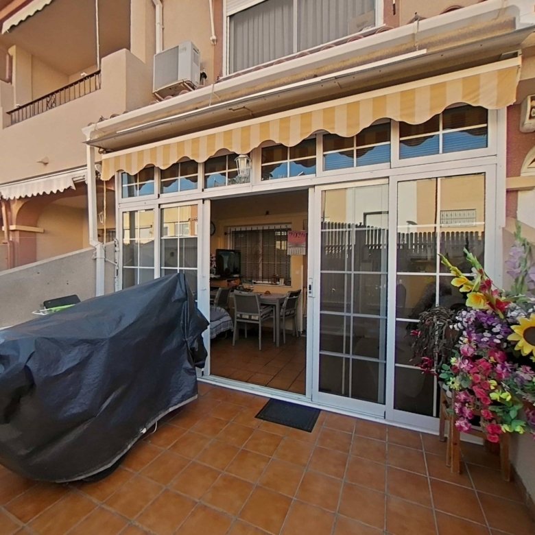 This beautiful villa was completely renovated in February 2023 to a high standard. The floors, kitchen, bathrooms, electrical system, and plasterwork were all updated, giving the house a modern and fresh look. The villa is situated on a spacious private plot with a large paved terrace and a private heated pool with a jacuzzi – ideal for year-round use. There’s ample space for al fresco dining, sunbathing, or entertaining. There’s also access to a communal pool just a short walk away. The ground floor features a bright, spacious living/dining room, a modern kitchen , and a stylish bathroom with a walk-in shower and laundry room. On the first floor are two double bedrooms with fitted wardrobes and a spacious, modern bathroom – also with a walk-in shower. The master bedroom boasts a private terrace with unobstructed views. A staircase leads to the roof terrace , covered with artificial grass – an ideal spot for relaxing or entertaining. Under the stairs is a practical storage room . This level also features an additional room that could serve as a third bedroom, office, or hobby room. The property is sold unfurnished . White goods and air conditioning are, of course, included. The Zodiaco V urbanization enjoys a prime location : just 500 meters from shops, bars, restaurants, and a bus stop. The popular La Fuente shopping center and Villamartin Plaza are about a 20-minute walk away , while beaches, golf courses , and the Zenia Boulevard shopping center are just a few minutes’ drive away. A unique, stylishly renovated villa that perfectly combines comfort, modern design and an excellent location . This beautifully renovated house awaits you! Don’t hesitate to contact us for more information or to schedule a visit.