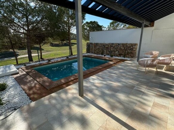 NEWLY REFURBISHED 2 BEDROOM & 2 BATHROOM VILLAS NOW AVAILABLE ON PERAJELA GOLF RESORT directly from Platinum Property Spain.UPDATE – Peraleja Golf Course, clubhouse and Piano Bar are currently closed, however it has been purchased by new investors and is on the pathway to a remarkable transformation, with renovations already underway on many of the unfinished properties. The golf course is expected to be well on the way to recovery towards the end of 2025 and may be in a condition ready for play in the first part of 2026. The new owners are also in active discussions with a number of interested parties for the reopening of the Clubhouse and Piano Bar. As part of the overall investment plan, the new owners now own much of the open area extending beyond the boundary of the golf course and are actively evaluating the opportunities for using that land as future recreational space. This is a great opportunity to buy a fantastic golf villa in the early stages of the redevelopment and secure it before the prices inevitably rise when the golf course, Clubhouse and Piano Bar reopen.DON´T MISS THIS FANTASTIC INVESTMENT OPPORTUNITYDETAILS – These contemporary designed two bedroom villa have high wooden ceilings and a large open plan lounge/dining room with air conditioning, gas central heating and a wood burner, making it ideal for either summer or winter. They have large concertina doors that lead directing to the outside tiled terrace which overlooks the private pool and garden area. Both the bedrooms have built in wardrobes with one being on-suite. The kitchen is a good size and very stylish with good quality appliances fitted, leading to an outside storage area. The front of the villa is low maintenance with a seating area and carport with an electric entrance gate.Renovations includes: Varnished wood structure in slanting roof. Security grills Peraleja Golf style. Cast iron fire place. Reinforced entrance door, exterior doors & windows made of treated iroko wood. Fully fitted kitchen. Central air conditioning. Skylights. Gas fired central heating equipped with gas boiler and radiators. Intercom. Electrically powered car door. 3.5 x 5.5 metres swimming pool with outdoor shower. Outdoor lighting and water points. Finished garden.LOCATION – The villas are a 25 minutes drive from the new Murcia International Airport and just over an hour from Alicante airport. Peraleja Golf is within 30 minutes from the lively cities of Murcia and Cartegena. The popular Spanish town of Sucina, made famous by A Place in the Sun TV program, is only 5 minutes by car and offers a good choice of bars and restaurants, two supermarkets, chemist, doctors, ironmongers, all everyday amenities. The tourist towns and beaches of Santiago de la Ribera, Lo Pagan and Los Alcazares are only 20 minutes away.