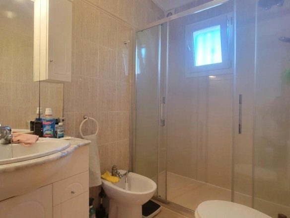 Semi-detached villa, all on one level with no neighbors above, in a lovely residential complex with a swimming pool and gardens in a very quiet area of Los Montesinos. It consists of a porch at the entrance of the house, a spacious living room, a fully equipped separate kitchen, two double bedrooms, one single bedroom, a bathroom with an Italian shower, a small utility room with a washing machine, a glazed terrace, a large solarium with a pergola with views of the landscape and a huge garden of approximately 150 m2 fenced with small trees. Parking on the private plot. Direct access from the street. Air conditioning. Unfurnished. Built-in wardrobes in the bedrooms. Windows in every room. Lots of natural light. In very good condition. East-facing. With clear views of fields, lagoons, … Located close to all amenities, supermarkets, cafes, the center of the village of Los Montesinos, the “Greenland’s Sport Club” leisure area, about 20 minutes by car from the beaches of Guardamar, La Mata,… Perfect for enjoying the open air and the pleasant Mediterranean climate all year round!