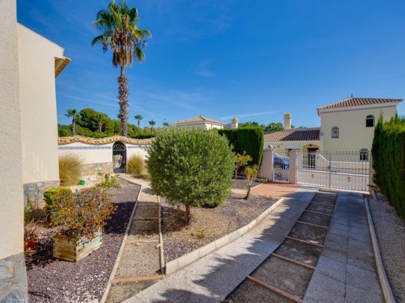 Beautiful detached 3-bedroom villa in a prime location, frontline to Las Ramblas golf course , in Orihuela Costa (Alicante) . A peaceful and natural setting, perfect for golf lovers and those who enjoy the Mediterranean lifestyle , just minutes from the beaches and all amenities. The home sits on a spacious 424 m² private plot and features a functional layout that includes 3 bedrooms , 1 full bathroom, 1 guest toilet, a separate kitchen , a large living room, and a dining room. Outside, it features a magnificent private garden with a swimming pool and on-site parking. The villa is sold furnished , equipped with air conditioning and ready to move into, making it an ideal opportunity both as a permanent residence or as a second home on the Costa Blanca . Its location on Las Ramblas Golf Course guarantees a privileged setting, surrounded by nature and other prestigious golf courses such as Villamartín Golf, Campoamor Golf , and Las Colinas Golf . Furthermore, the beaches of Orihuela Costa , the La Zenia Boulevard shopping center , and a wide range of restaurants, shops, and entertainment venues are just a few minutes away by car. Alicante and Murcia-Corvera airports are less than an hour away, providing excellent connections to the rest of Europe. This villa combines location, privacy, and comfort in an incomparable setting. Contact us today to arrange a viewing.