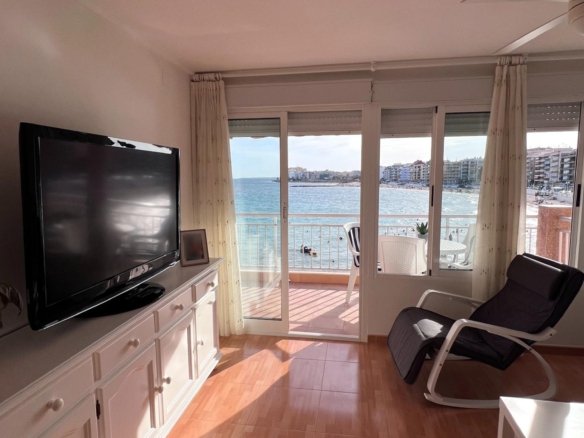 Seafront apartment with direct sea and beach views This apartment is a true Mediterranean gem for those who dream of waking up to the sound of the waves and enjoying the sea right from their home. A spacious terrace offers stunning views, while inside, the fully renovated interior creates a bright and welcoming space, ready to move into. Features: Total area: 86 m² 3 bedrooms (master with en-suite bathroom) 2 bathrooms Separate fully equipped kitchen Living room and bedroom with full wall windows overlooking the sea Utility room combining storage and laundry Large terrace with retractable awning Electric shutters 2nd floor Building details: Built in 1981, the apartment has been completely renovated Showers available at the entrance from the beach for residents Location: First line, with the beach just outside your door. All amenities within walking distance: supermarkets, restaurants, pharmacy, promenade, parks. This is more than an apartment — it’s a lifestyle, where every day begins with the sun and the sea. Perfect for permanent living, family holidays, or as an investment with excellent rental potential. Contact us today for more information or to arrange a viewing. We speak your language and will help you make your dream of living by the sea come true!