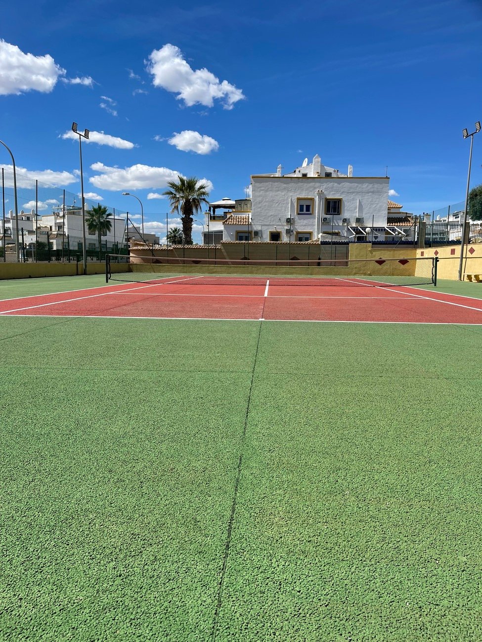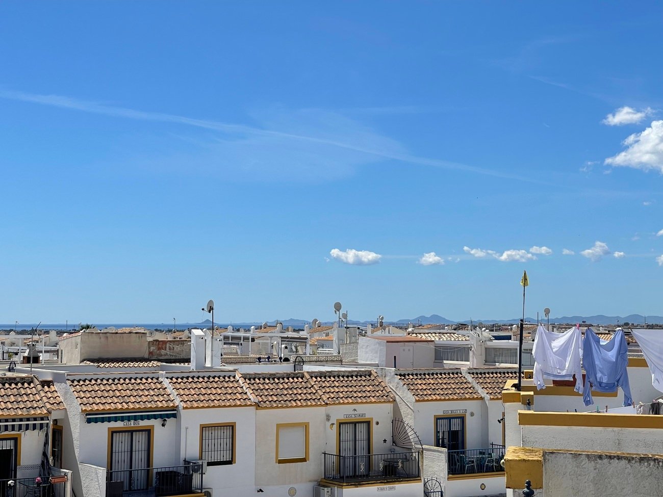 Lovely east facing 3-bedroom, 2-bathroom house located in La Florida. On the ground floor of the house, you have a beautiful garden where you will find enough space to enjoy the sun and of road parking with carport. Through the terrace at the front of the property you access the cozy living/dining room.There is a separate fully equipped kitchen with access to the terrace next to the house and a storage room for your bbq, garden furniture and bikes for example.There is L shape living room and separate kitchen which han been renewed.The bedroom on the ground floor has fitted wardrobes and a full bathroom with shower.Stairs from the lounge take you upstairs where you will find a family bathroom and 2 bedrooms with fitted wardrobes. 1 of the bedrooms has direct access to a terrace.On the upper floor you will also find the roof terrace with a beautiful view of the surrounding area and sea views.The community has a swimming pool and a tennis court.Within walking distance, you will find several bars, restaurants and a small supermarket.La Florida is a central Residencial área in Orihuela Costa. The beaches of Punta Prima and Playa Flamenca are less than a 30-minute walk away for visitors without a vehicle. La Florida has some of the most popular bars and restaurants in Orihuela Costa. All of these are centered around Scorpio Street, which is also home to a park, playground, and tennis courts. The famous Abbey Tavern is an Irish-themed bar. It has a beautiful bar, DJ booth, dance floor and a fantastic secret gardenOther entertainment options in this strip include The Arianaz bar, Waldemar’s Indian restaurant and Pizzeria La Familia, which also offers live entertainment in the garden. A short walk from the strip is the very popular Emerald Isle. This is a large Irish bar and restaurant complex famous for its regular live entertainment and Sunday Roast. Visitors can enjoy a large swimming pool surrounded by lawns to relax and sunbathe. The resort is also home to the well-maintained Emerald IsleLawn Bowls Club.