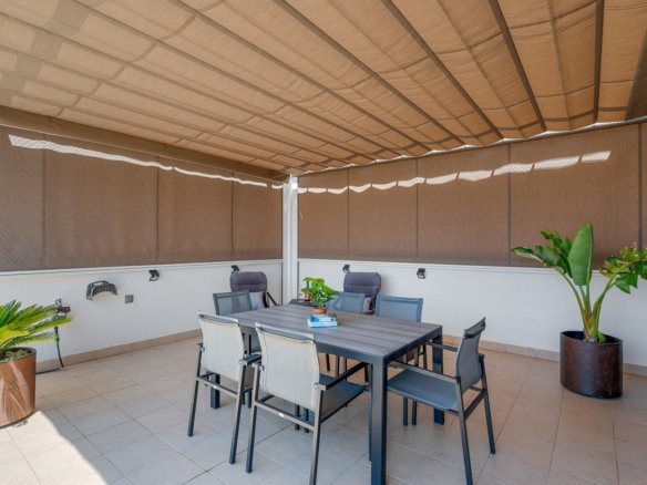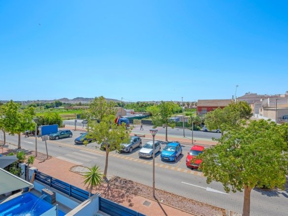 Located in the heart of the charming and authentic Spanish village of Formentera del Segura, this beautifully maintained townhouse offers a unique combination of modern comfort and traditional atmosphere. Built in 2018, the home is part of a small and exclusive community of only four properties. All current neighbours have owned their homes since the development was completed. This is the very first time one of these properties is being offered for sale, making it a rare and valuable opportunity. The property features three spacious bedrooms and two stylish bathrooms, one of which is en-suite. Two of the bedrooms are conveniently located on the ground floor, making the home practical and easy to live in year-round. The interior is tastefully decorated with high-quality furniture and finishes, all of which are included in the sale. The house has been meticulously cared for and is in excellent condition, offering a true turn-key solution. Outside, you are welcomed by a private swimming pool with a beautiful waterfall feature, as well as a private jacuzzi – the perfect spot for relaxation and enjoyment. The rooftop terrace offers wonderful potential: it has already been prepared for the extension of the third bedroom with one more private bathroom, with both drainage and electrical installations prepared. The terrace is ideal for entertaining or simply enjoying the Mediterranean lifestyle, complete with built-in sunshades, privacy screens, and a sheltered lounge area. The views from here are truly amazing! The home is equipped with a full-house water filtration system, allowing you to drink directly from the tap. There is air conditioning on both levels – a central system downstairs and a separate unit upstairs – as well as ventilation that has ensured no moisture issues, even when the house has been unoccupied for a long time. Fibre internet is installed and reinforced to provide strong coverage even on the rooftop terrace, making it suitable for working remotely or streaming under the sun also from the rooftop terrace! This lovely home is sold fully furnished. Formentera del Segura offers a welcoming, international community while maintaining its traditional Spanish soul. You’ll find local cafés, bakeries, and restaurants just a short walk away, nearest supermarket is just a two minutes walk! The Norwegian school is an 8-minute drive away. And the golden beaches of Guardamar del Segura only ten minutes by car. Several excellent golf courses are nearby, along with scenic cycling routes and natural parks. This is a truly special home in an exceptional location – perfect for those seeking comfort, style, and a peaceful way of life on the Costa Blanca.