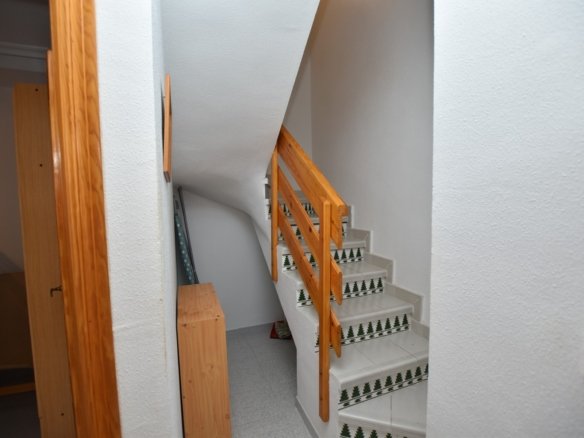 On the lower floor, there are two bedrooms and a full bathroom. The upper floor hosts a third bedroom, a second bathroom, and access to a private solarium with sun all day.