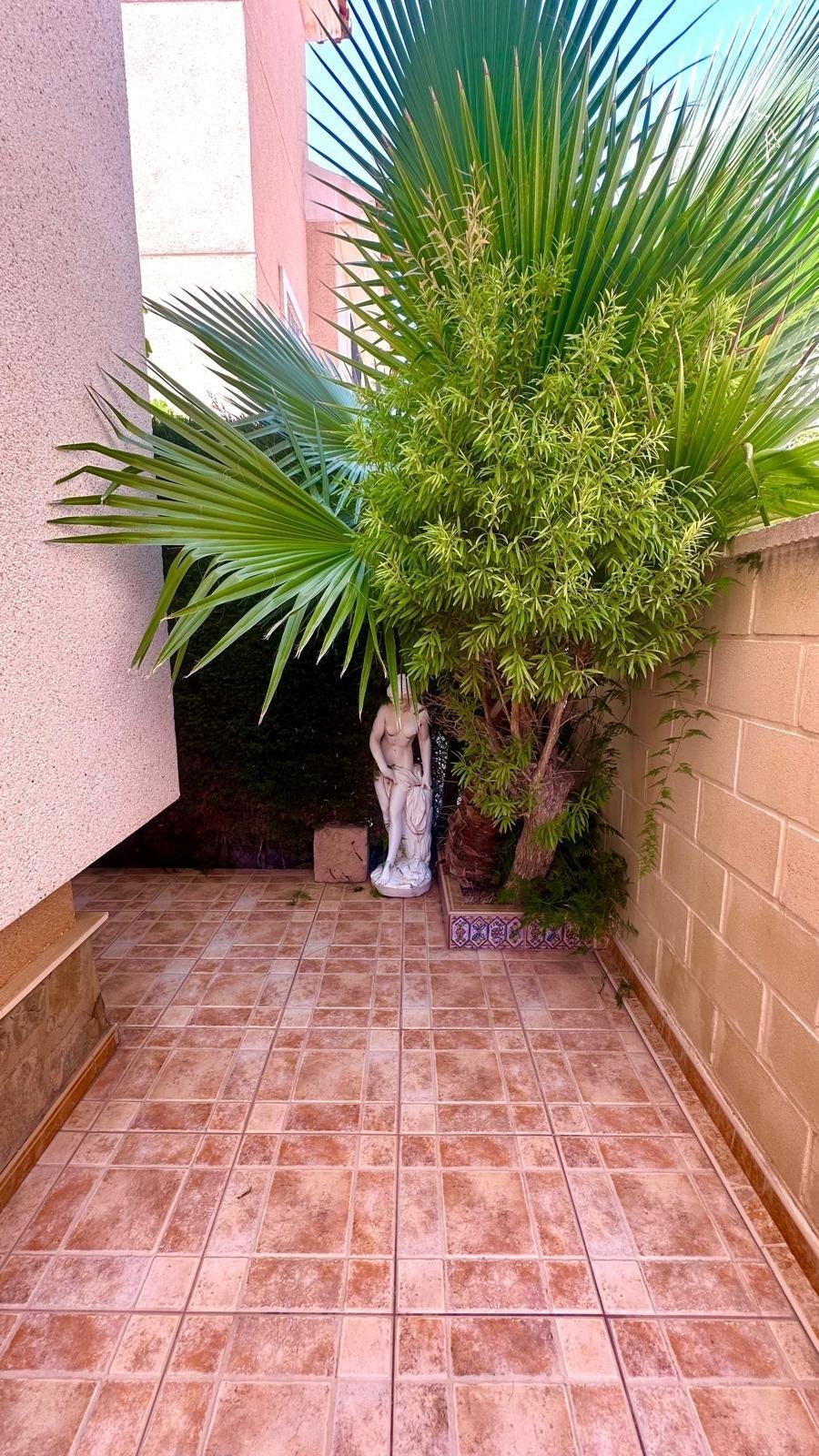 Spectacular townhouse in Los Altos, Orihuela Costa – Spacious, bright, and ready to move in Located in one of the most sought-after areas of Orihuela Costa, this beautiful townhouse is located within a well-maintained private development, offering a quiet, safe environment perfectly connected to all essential services. Just steps away, you’ll find supermarkets, shopping areas, public transportation, pharmacies, and everything you need for everyday life. The property is part of a residential complex with a communal pool, ideal for family enjoyment during the summer months. It is located in an area that combines convenience, tranquility, and proximity to the beaches and amenities of the Costa Blanca. One of the great advantages of this home is its private underground garage, currently renovated into a spacious games room and an additional double bedroom. This offers multiple uses, whether as a leisure area, study, storage room, cinema room, or even as a parking space, as the original access can be reopened. The outdoor space is very spacious, ideal for enjoying the outdoors, with a pergola in the garden providing shade and a perfect place for al fresco meals, relaxing moments, or family gatherings. Upon entering the home, we find a very cozy living-dining room with a corner fireplace, providing warmth and comfort in the cooler months. The layout of this ground floor is completed by a separate, practical kitchen, well connected to the common areas, and a full bathroom, offering functionality for everyday living. On the first floor, there are two bright double bedrooms with good storage space, as well as a second full bathroom. From this floor, there is access to a large private terrace with sea views, a perfect spot for sunbathing, relaxing, or simply enjoying the surroundings in complete privacy. The home has been designed to offer comfort, versatility, and spaciousness, with well-utilized spaces, multiple usage options, and a residential setting that adds value to the property. In short, this townhouse in Los Altos is an ideal choice for both a permanent residence and a second home or investment, thanks to its excellent location, its indoor and outdoor spaces, its converted garage into a multipurpose area, and its terrace with sea views. A property ready to enjoy from day one.