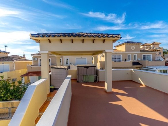 Detached house in Orihuela Costa (Las Filipinas) €295,000General descriptionWe present this spectacular detached house for €295,000, located in Las Filipinas, a prestigious and quiet residential area of Orihuela Costa, in the south of the province of Alicante. Surrounded by Mediterranean nature and just a few minutes from the best beaches on the Costa Blanca, this property offers an ideal combination of privacy, comfort and quality of life.The property is located in a well-connected area, close to golf courses, shopping centres, leisure areas, international schools and all the necessary amenities for year-round living or enjoying holidays.Exterior and accessAccess to the property is via a large private courtyard that surrounds the entire property. At the front, there is a perfect space for outdoor gatherings, barbecues and moments of relaxation.The land allows for convenient parking, bicycle storage and garden furniture or decorative plants. The plot is enclosed by a Mediterranean-style wall, providing privacy and security.Interior layoutThe house is designed with spaciousness, functionality and natural light as its main features. The quality finishes and large windows offer a cosy and elegant atmosphere.Ground floorLiving-dining room Spacious and comfortable, with direct access to the terrace.Separate kitchen Fully equipped, with modern furniture and access to an adjoining pantry.Double bedroom With excellent natural lighting.Full bathroom With shower cubicle.Gallery Functional and versatile space.First floorTwo spacious bedrooms, one of which has access to a private terrace.Full bathroom With bathtub and elegant finishes.Terraces and viewsThe property has a large terrace and a private solarium, ideal for enjoying the sun all year round. From these areas, you can enjoy unobstructed views of green areas and the natural surroundings, making this space the perfect place to relax or enjoy al fresco dining.Communal areas and servicesThe development offersA large communal swimming pool surrounded by well-kept gardens.Sun loungers, shaded areas and rest areas.Sports areas and nearby parks, ideal for families with children.Additional amenitiesPrivate parking space and storage room.Security system with perimeter fence and reinforced access gate.Air conditioning in the main rooms.Property ready to move into.Privileged location Las Filipinas, Orihuela CostaLas Filipinas is a quiet but very well-located residential area, ideal for both residents and those looking for a second home on the coast. All necessary services are available in the surrounding area, as well as an excellent range of leisure, sports and tourism activities.Nearby beaches (10-15 minutes by car)La Zenia BeachPlaya FlamencaCala CapitánPlaya de CampoamorPlaya de Cabo RoigShopping centres and servicesZenia Boulevard (10 minutes away) the largest open-air shopping centre in the province.Supermarkets, restaurants, pharmacies, international schools, etc.Nearby golf coursesVillamartín Golf ClubLas Ramblas Golf CourseReal Club de Golf CampoamorLas Colinas Golf Country ClubNearby airportsAlicante-Elche Airport (ALC) 55 minutes by car.Murcia Region International Airport (RMU) 45 minutes by car.Ideal for…This property is ideal for those looking for a well-located home, surrounded by amenities and close to the sea. Whether as a permanent home or a second residence to enjoy the Mediterranean climate, its excellent location, layout and quality make it a safe investment.IBI €261.04/yearCommunity fees €320/year