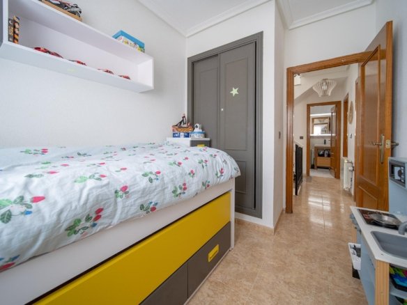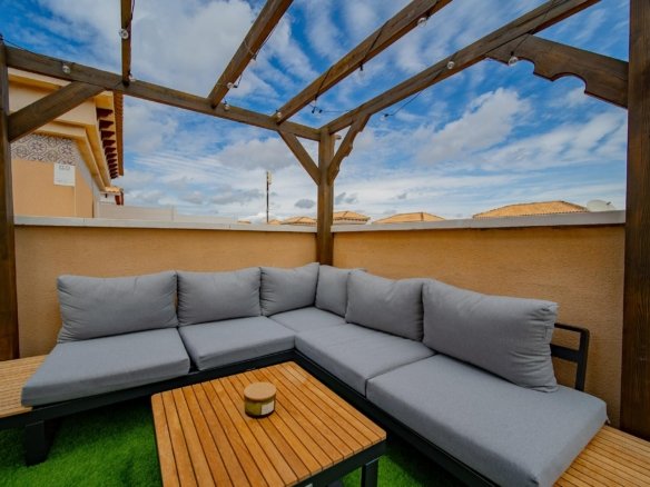 Fully Renovated Townhouse in Pau 26, Orihuela CostaLocated in a quiet residential complex with a communal pool, this corner townhouse has been completely renovated and offers excellent outdoor spaces and good privacy.Built in 2005 on an 81 m² plot, it offers 76 m² of built area distributed over two floors.Features:3 bedrooms2 bathroomsOpen-plan kitchenPrivate terrace and solariumStorage room or utility areaOn-plot parking spacePartially furnishedNorthwest-facingCommunal poolAnnual costs:IBI: €295Community: €275