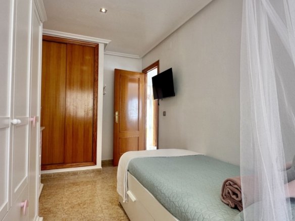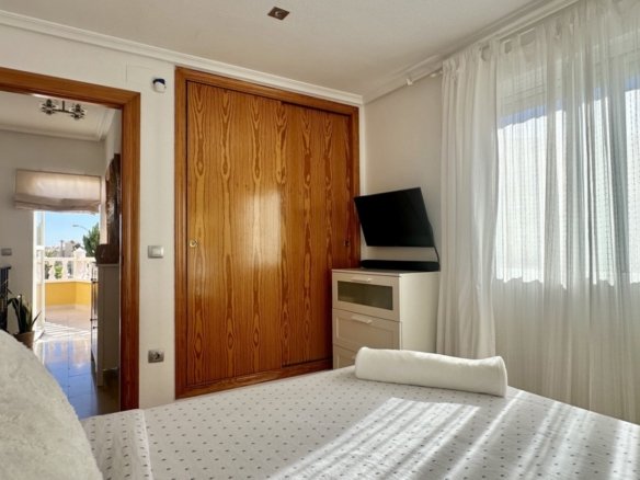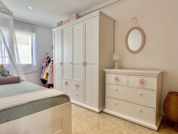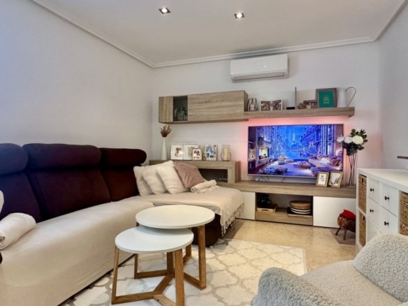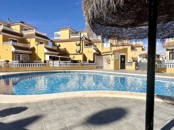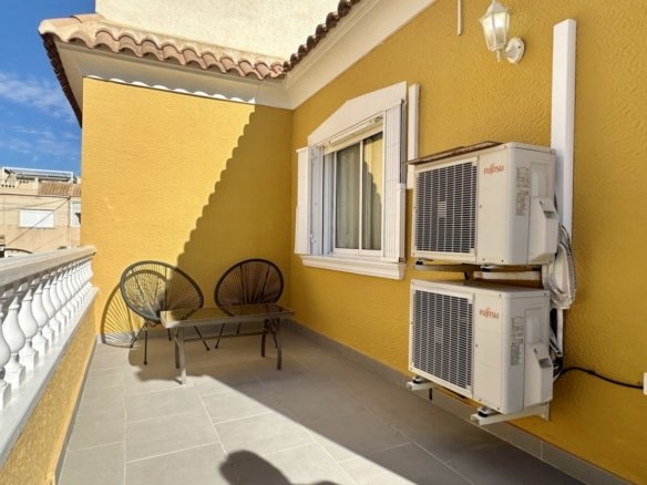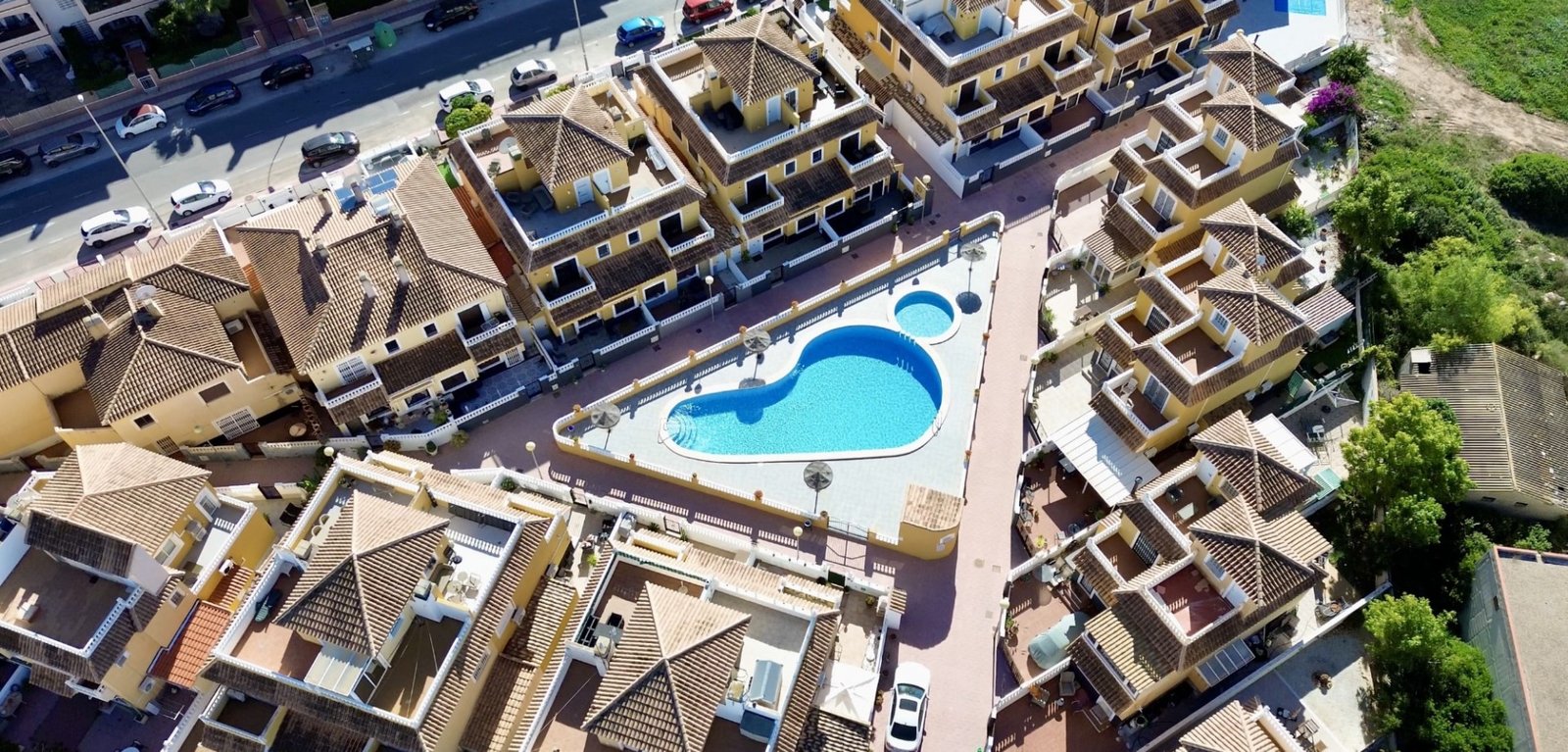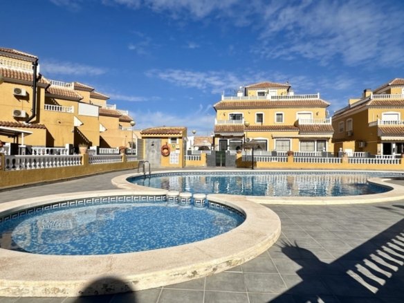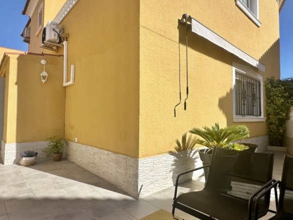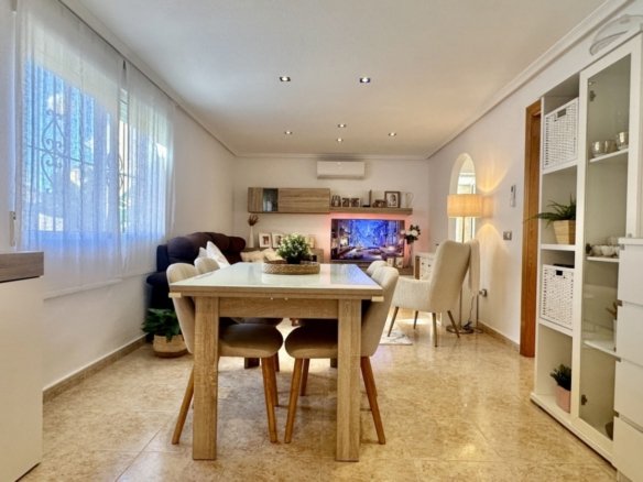 This beautiful two-storey semi-detached villa offers 167 m² built and 116 m² of interior living space, located in a peaceful and secure residential complex with a community pool and green areas. The home features 3 spacious bedrooms, 2 bathrooms, an independent fully equipped kitchen, and a bright living room with air conditioning. It also includes 4 private terraces, perfect for outdoor dining, relaxation, or sunbathing. Located in one of Orihuela Costa’s most sought-after areas: 6 minutes to the beach5 minutes to La Zenia Boulevard10 minutes to Torrevieja Hospital2 minutes to schools With plenty of natural light, privacy, and a charming Mediterranean feel, this property is ideal as a permanent home, holiday residence, or rental investment on the Costa Blanca.