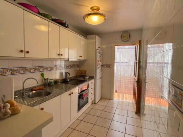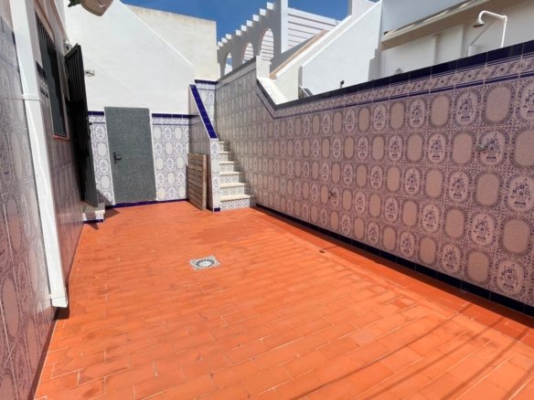At the rear, you can enjoy the coolness of the patio, a laundry area, and a staircase leading to the solarium with impressive views.