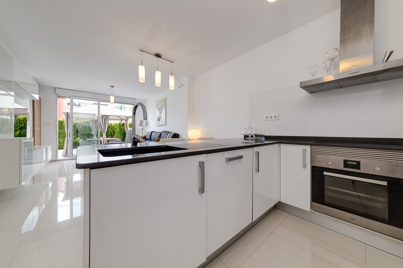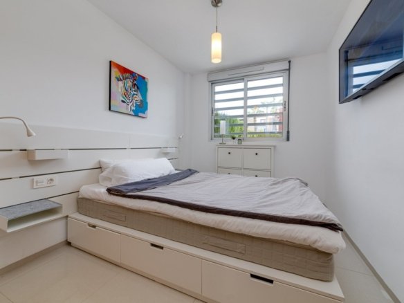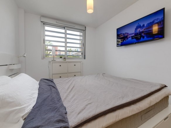 In Sector 25, which is bordering with the popular area of Aguas Nuevas, we can now offer a relatively newly built townhouse. In 2018, the property and also the communal area were ready for the new owners. This lovely house consists of an open plan for the living room and the kitchen. On the lower level there is also a bedroom and a bathroom. The terrace faces the courtyard where there is a communal pool, padel courts, playground and plenty of space to enjoy the sun. The second floor consists of two bedrooms and a bathroom. One of the bedrooms has access to a balcony that leads up to the roof terrace. From here, the view of the common area is absolutely wonderful. On the roof terrace, there is both a barbecue and a shower installed so that you can get as much as possible out of the space. The entire property is equipped with A/C via ducts, everything is controlled with a panel in a easy way. Otherwise, you are close to grocery stores, restaurants, bars and also the beach. Although this is a relatively new property, the owners have still taken good care of it both interior and exterior. Legal costs and VAT are not included in the price.