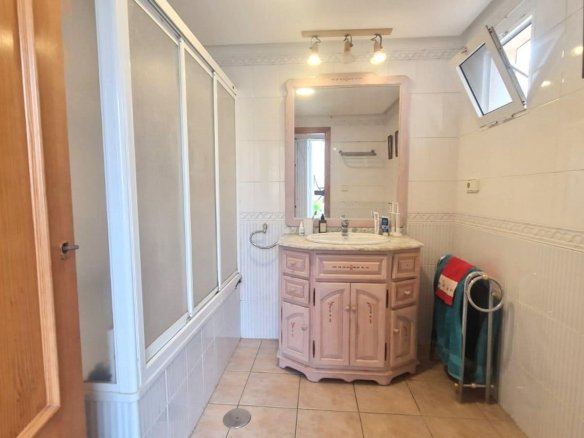 Spacious two floors semi-detached house in very good condition in a beautiful Residential in Aguas Nuevas, approximately 1 km from the magnificent beach of La Mata! On the ground floor, there are a large living room, a fully equipped independent kitchen, a bedroom with built-in wardrobes and a bathroom with a shower. The living room has access to the large terrace with garden, barbecue, plants, overlooking the swimming pool. On the first floor, there are two double bedrooms with built-in wardrobes and a bathroom with a bathtub. And the solarium is accessed by an internal staircase. Furnished. Air conditioning. Optional: large closed garage (18 m2) in the community basement: 15.000€ All located in a closed Residential complex with swimming pool and gardens, close to all amenities, cafeterias, restaurants, bus stop, and so on. Perfect to live all year round or spend holidays to enjoy the good Mediterranean climate and the beach!