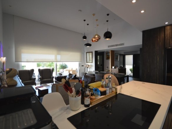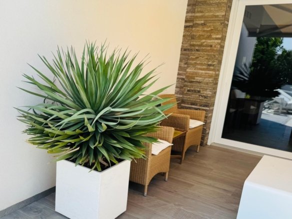 This exclusive and private detached villa at La Finca Golf Resort offers bright, open-plan living spaces where the lounge, kitchen, and dining area flow seamlessly. Large windows flood the home with natural light and open onto a spacious L-shaped terrace, landscaped garden, and private pool. The terrace is partially shaded by a pergola with electric awnings — perfect for enjoying the Mediterranean climate year-round. Currently configured as a spacious two-bedroom home, the villa can be effortlessly converted back into a three-bedroom property. Available furnished or unfurnished to suit your preferences. Features include: Fully fitted modern kitchen with high-end Miele appliances Zoned hot/cold air conditioning & underfloor heating in bathrooms Smart home automation & electric shutters Security alarm system with video surveillance Private pool with outdoor shower Electric vehicle charging point Multiple electric awnings & automatic gate for private parking Mature gardens with fruit trees and aromatic plants La Finca Golf Resort amenities: Award-winning 18-hole golf course & exclusive clubhouse Fine dining restaurants (national & international cuisine) Five-star hotel with spa & gym Location: Close to the golden beaches of Guardamar and Torrevieja. Alicante Airport: 40 min | Murcia Airport: 55 min. Enjoy over 300 days of sunshine a year in the heart of Vega Baja.