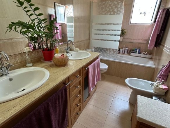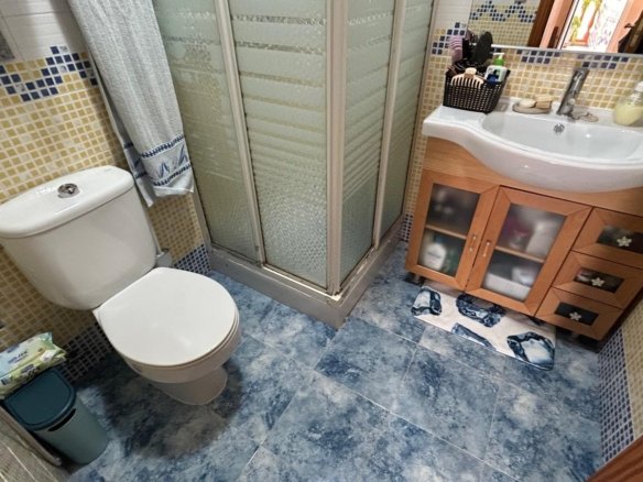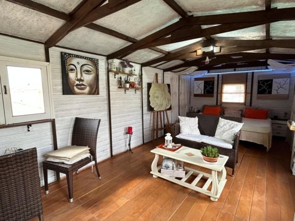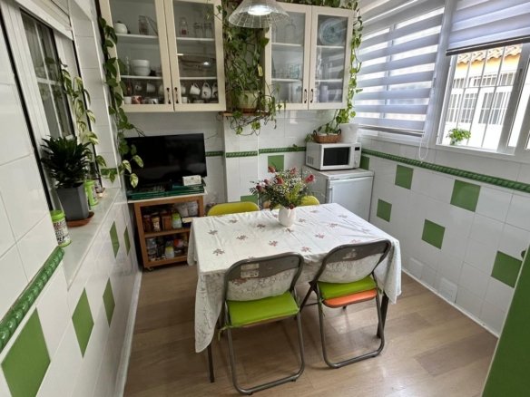This charming semi-detached house in Los Montesinos offers a comfortable and well-maintained living space. The home features three spacious bedrooms, two bathrooms, and an additional guest WC. The independent kitchen is fully equipped with modern appliances, making it a practical and inviting space for cooking. The villa is in overall good condition and includes built-in wardrobes in all bedrooms for ample storage. The living area is bright and airy, complemented by air conditioning and heating to ensure year-round comfort. A cozy fireplace adds warmth and character to the space. Outdoor living is a highlight of this property, with a private yard, a spacious terrace, and a solarium offering plenty of space to relax and enjoy the sunshine. A balcony provides additional outdoor seating with pleasant views. The villa also comes with a private garage and storage room for added convenience. On the solarium is also wooden house which gives extra space and even a spare bedroom. Located in a well-connected area, the property is just a 10-minute drive from the beach, 30 minutes from the airport, and only 2 minutes from local amenities. Golf lovers will appreciate being just 15 minutes from a nearby course. Partly furnished and ready to move in, this villa is a fantastic opportunity for those looking for a comfortable home in a great location.