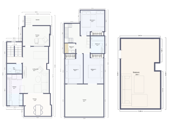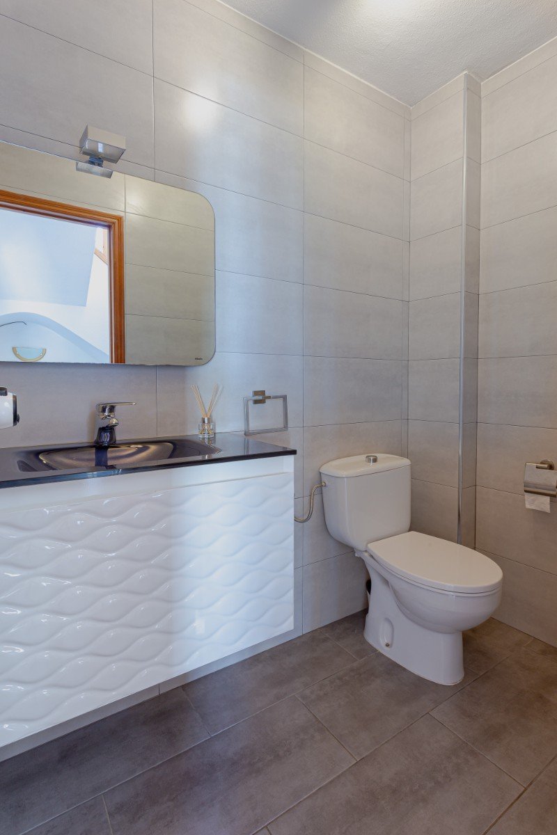 This charming townhouse is located in the well-known Verdemar urbanisation in Villamartín (Orihuela Costa). The property has been renovated and offers 3 bedrooms, 2 bathrooms and a guest toilet, providing a comfortable and functional layout.On the main floor, you will find a spacious living room, a fully equipped kitchen, and a guest toilet. From this level, there is access to two terraces: one at the front with morning sun, and another one facing south, perfect to enjoy the sun all day long.The upper floor is dedicated to the sleeping area, with 3 bedrooms and 2 bathrooms (one with shower and one with bathtub). On the lower level, there is a large 45 m² south-facing terrace, ideal for relaxing or enjoying the Mediterranean climate.The top floor offers a 22 m² solarium with outdoor shower and storage space, perfect for sunbathing or creating a chill-out area.Located close to all amenities, golf courses, and just a few minutes from the beaches of Campoamor and Cabo Roig, this property offers comfort, outdoor space and an excellent location.