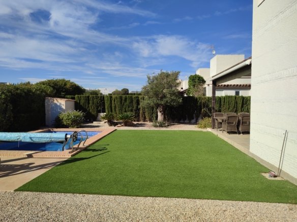 RESALE VILLA – Set on 3 levels there are 3 bedrooms and 2 walkin showers, plus terraces of the bedrooms. The living area has a fully fitted modern kitchen, open fire place creates a cozy lounge for the winter, with huge sliding doors opening out to the garden, terrace and private pool. This garden warps around the villa, there is a carport and parking in front of the house. This villa is being part furnished and ready to move into, however there is also the opportunity to extend, add rooms or change the layout. The villa by car is 30 minutes from the new Murcia International Airport and just over an hour from Alicante airport. The closest town of Sucina is 5 minutes away with San Javier and the beaches of the Mar Menor 15 minutes. The nearest city is Murcia City which is only a half hour drive away. UPDATE – Peraleja Golf Course, clubhouse and Piano Bar are currently closed, however it has been purchased by new investors and is on the pathway to a remarkable transformation, with renovations already underway on many of the unfinished properties. The golf course is expected to be well on the way to recovery towards the end of Autumn 2025 and may be in a condition ready for play in the first part of 2026. The new owners are also in active discussions with a number of interested parties for the reopening of the Clubhouse and Piano Bar. As part of the overall investment plan, the new owners now own much of the open area extending beyond the boundary of the golf course and are actively evaluating the opportunities for using that land as future recreational space. This is a great opportunity to buy a fantastic golf villa in the early stages of the redevelopment and secure it before the prices inevitably rise when the golf course, Clubhouse and Piano Bar reopen.