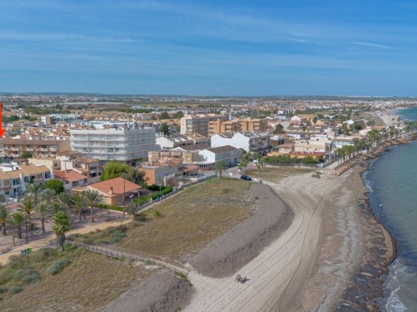 This 86 m² townhouse for sale is located in El Mojón, one of the most peaceful coastal areas of Pilar de la Horadada, just 300 metres from the sea, close to beaches, the promenade and parks, and surrounded by all essential services such as supermarkets, restaurants and sports areas.The house is divided into two floors:Ground floor: spacious 22 m² living-dining room, perfect for family gatherings; independent kitchen fully equipped; one bedroom on this level with easy access; full bathroom; and a storage room ideal for bikes, beach gear or tools. There is also a front terrace to enjoy the outdoors.First floor: features two bright bedrooms, both with built-in wardrobes, a full bathroom and a private terrace.On the rooftop there is a private solarium, ideal for sunbathing, relaxing or enjoying the sea breeze.Its excellent location makes it perfect as a permanent residence or a holiday home in the South Costa Blanca, with the beach, promenade and green areas just a short walk away.