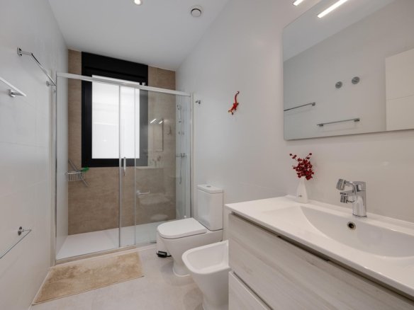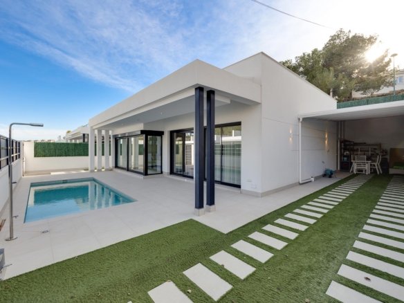 This modern detached villa in Pinar de Campoverde is an ideal option for those seeking tranquility , privacy and an authentic Mediterranean lifestyle surrounded by nature, without sacrificing proximity to beaches, golf and essential services. Built on a single level on a 300 m² plot , the house offers a comfortable and functional layout with 3 bedrooms and 2 bathrooms , designed for year-round enjoyment. The exterior features a private swimming pool , a covered parking area within the property, and a spectacular private rooftop solarium , perfect for relaxing in the sun, creating a chill-out zone, or enjoying pleasant evenings outdoors. The villa is sold fully furnished and equipped , including ducted air conditioning , allowing you to move in from day one in maximum comfort. Its bright spaces and contemporary design create a welcoming and practical atmosphere, ideal as a permanent residence, holiday home, or investment property. Located in a peaceful residential area surrounded by nature , this property is just a 5-minute drive from Lo Romero Golf , one of the most highly regarded golf courses in the area, and 15 minutes from the beaches of Torre de la Horadada , renowned for their fine sand, crystal-clear waters, and lively promenade. Nearby, you’ll find supermarkets , restaurants , local amenities , and a wide range of leisure activities, as well as excellent access to major roads and airports. Living in Pinar de Campoverde means enjoying peace, sunshine, and nature, with the convenience of having beaches , golf courses , and all amenities within easy reach. Contact us today and discover this magnificent detached villa on the Costa Blanca South .