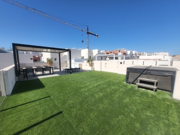 Discover this stunning luxury single-storey villa, located in the sought-after Pink Paradise urbanisation. Designed to combine elegance, comfort and cutting-edge technology, this exclusive property offers an exceptional lifestyle. The villa features 3 spacious bedrooms with built-in wardrobes and 2 bathrooms, including a master en-suite. The bright and generous open-plan living and dining area is flooded with natural light thanks to large glass doors opening onto the garden. The fully equipped open-plan kitchen blends seamlessly into the living space, while a separate laundry room provides a practical area for a washing machine. This is a smart home, equipped with customised home automation technology, offering enhanced comfort, decentralised management, increased security and excellent energy efficiency. Outside, the property boasts a beautiful private swimming pool and an impressive 104 m² private solarium, a true outdoor oasis complete with a fully equipped outdoor kitchen, awning, spa, and breathtaking views over the Torrevieja salt lakes. The villa includes a wide range of premium extras, such as: Outdoor kitchen Awning on the solarium External storage room Alarm system Security cameras Full home automation Video intercom Individual air conditioning in each room Outdoor plants and landscaping Wi-Fi on the solarium Ideally located close to Villamartín Golf Course, the property offers easy access to supermarkets, bars, restaurants and shops. The beaches of La Zenia and the Zenia Boulevard shopping centre are just 10 minutes by car, as are several prestigious golf courses. A rare opportunity to acquire an exceptional villa in an idyllic setting.