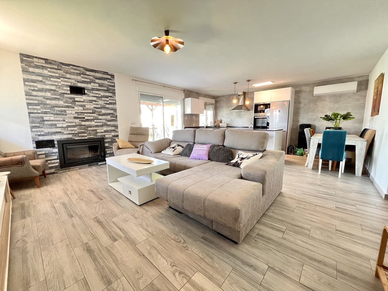 This stunning country home, built in 2020, is set on a generous 2,000m² plot just a stone’s throw from the lovely town of Alcantarilla. With 3 spacious bedrooms and 3 bathrooms, including a master bedroom with its own private en-suite, this property offers the perfect blend of comfort, space, and style. Inside, you’ll find a cozy fireplace, air conditioning for year-round comfort, and a fully filtered water system throughout the home. The open and inviting layout is filled with natural light, creating a warm and welcoming atmosphere.Outside, the property boasts a newly built 10×4 swimming pool complete with a pool heater, allowing you to enjoy a swim all year round. The large driveway fits up to 8 cars, and there’s a fantastic chillout area perfect for relaxing or entertaining. The fully fitted outdoor kitchen with BBQ and oven makes al fresco dining a real pleasure. External stairs lead to a spacious solarium with breathtaking mountain views, offering potential to convert into additional living space or simply to soak in the tranquil surroundings.For added peace of mind, the house is equipped with full security cameras around the property, ensuring you feel safe and secure at all times.Located within walking distance to the popular Restaurante “El Pedrusco”, known for its traditional Murcian dishes, and only a short drive into Alcantarilla town, where you’ll find everything you need from shops, bars, restaurants, and schools to hospitals and other essential services. And if you’re dreaming of the coast, the beautiful beaches of the Mar Menor are just a 20-minute drive away, making this property a perfect blend of peaceful country living with excellent access to town and sea.Whether you’re looking for a full-time residence, a holiday home, or a fantastic investment, this countryside gem truly ticks all the boxes.