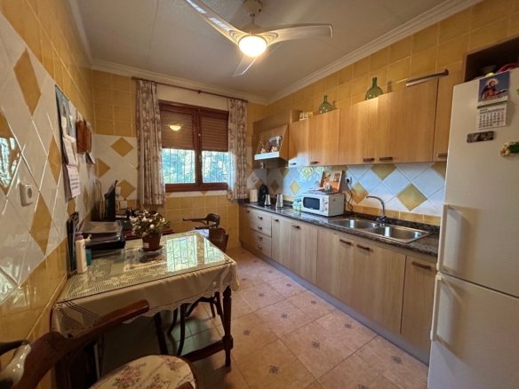 Located in the sought after area of ‘La Huerta’ in Totana, we have this lovely family home with 3 double bedrooms, ample living space with a self-contained one bedroom casita.Upon entering the plot of 3300m via an electric gate, you have the villa directly in front, surrounded by a multitude of fruit trees, mainly orange along with other mediterranean shrubs and trees. The villa itself is south facing with the main entrance door overlooking the small orchard.Entering the main villa with a build size of 182m via this large wooden door, you arrive into a spacious lounge / diner, with large wood burning stove and air conditioning. Beyond the dining area is the large master bedroom with built in wardrobes and freestanding wardrobe, and full en-suite bathroom complete with his and hers basins, walk in shower, wc and bidet.A hallway leads off of the lounge, with the fully tiled kitchen on the left, with further smaller dining table. To the right-hand side is a corridor with the two further double bedrooms. Both have ceiling fans and one of them also has a built-in wardrobe.Continuing down the hallway to the end, on the left we find the family bathroom with a corner bath, wc, bidet and basin, and to the right hand side and large pantry. A wooden door then leads to a large terrace.This covered terrace houses an enormous wooden table and chairs, perfect for entertaining! There is also a covered outside kitchen which houses a corner barbecue and pizza oven and kitchen sink.To the side of this kitchen is the casita which is made up of 3 individual rooms. The first room is the kitchen and living area. The second room houses the full bathroom and the third room which is currently being as a laundry / storeroom can easily be transformed into a double bedroom. The casita, outside kitchen and covered terrace all overlook the private pool, which is 9x4m. There is also and outside shower and pool pump building which offers further storage.There is further shade provided by a covered canopy, again close to the pool, with an ornate stone table with benches. There is plenty of space for several cars and a covered car port offering further shade.Access to the property is excellent and is just off the ‘trasvase’, the canal which runs at the rear of Totana. Totana has an important ceramic tradition, with Alfareros, or potters around the town, and has a strong agricultural base, an established livestock production industry, extensive vineyards producing table grapes and a good deal of salad and vegetable cultivation.Totana is in the south-west area of Murcia, 40 minutes from the capital City of Murcia and just 30 minutes from the new international airport at Corvera which opened in January 2019, and about 70 minutes from Alicante airport. It is 30km from the coast and the beaches of Mazarrón and Bolnuevo. At the foot of the Sierra Espuna, it is in the heart of the Guadalentin valley, and well connected, both by road and rail.